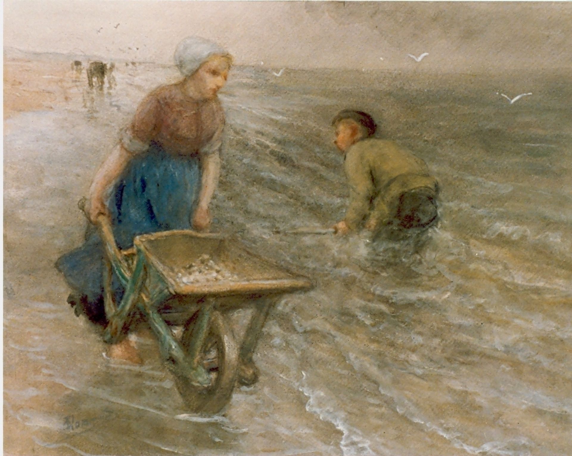 Bernard Blommers Kunstwerk • Aquarell • Zeichnung • zuvor zu verkaufen A native from Katwijk gathering shells