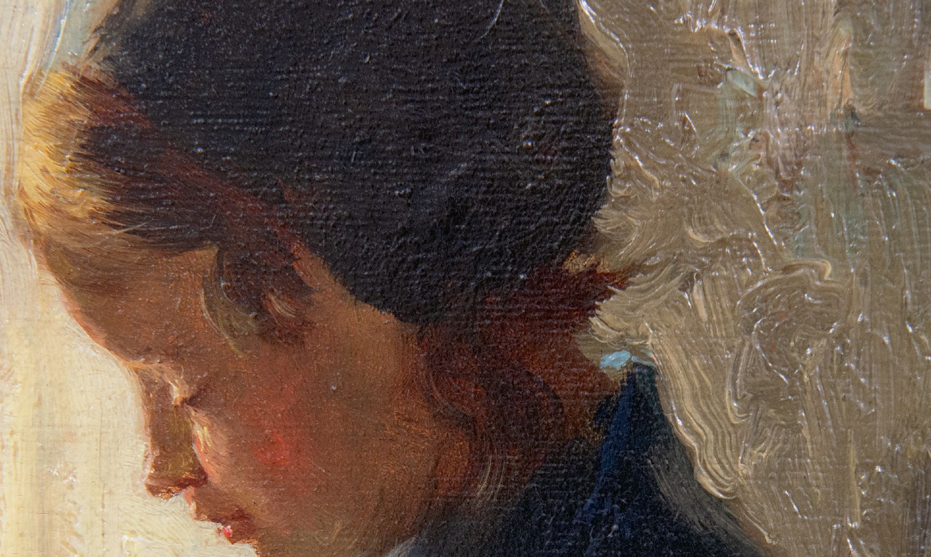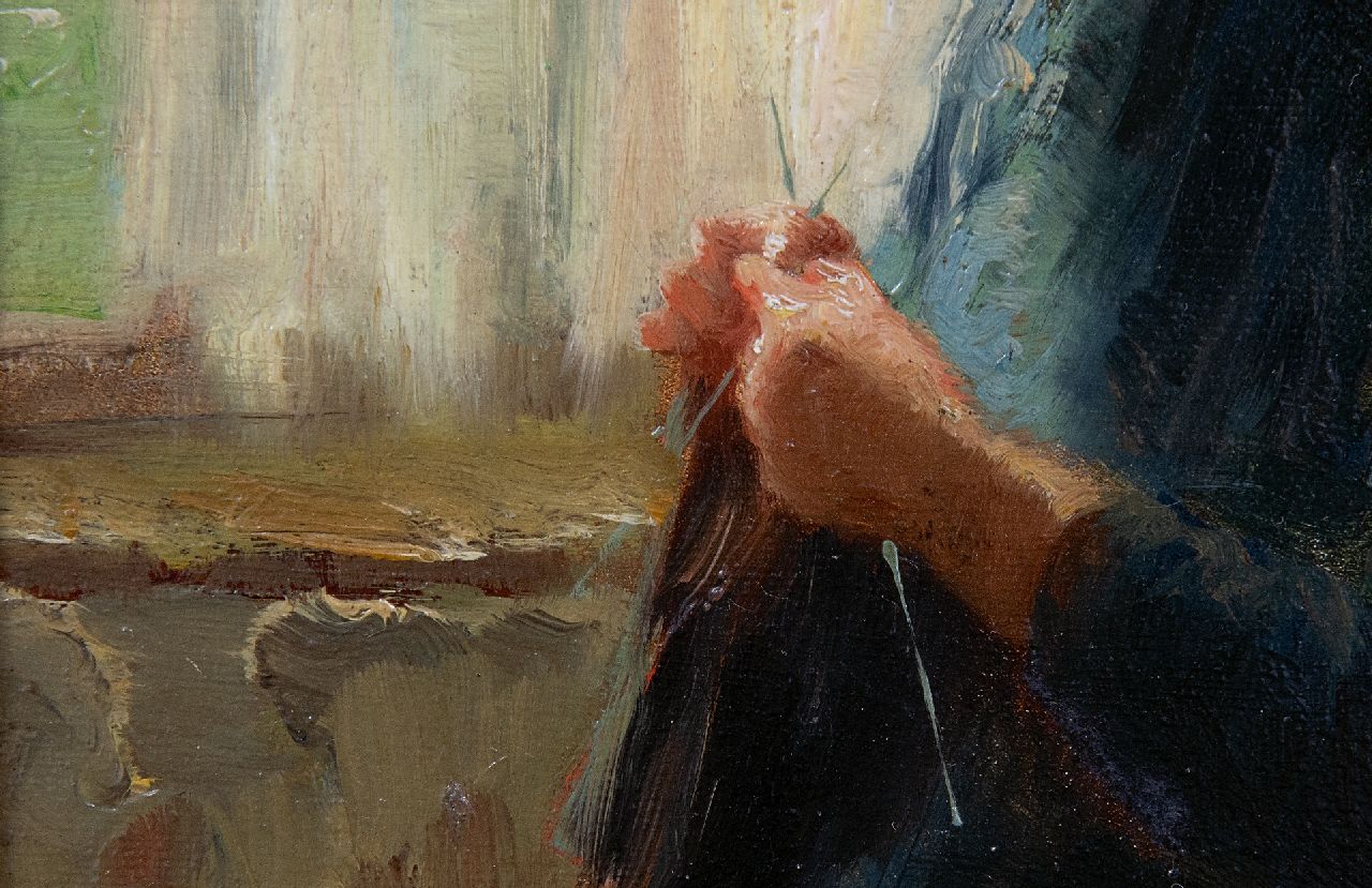Bernard de Hoog Kunstwerk • Gemälde • zu verkaufen A girl knitting