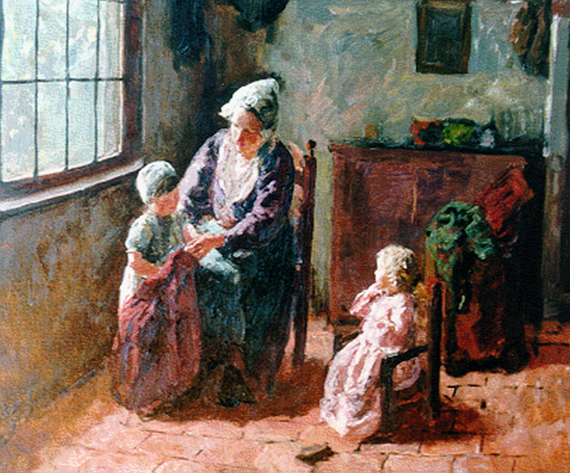 Bernard Pothast Kunstwerk • Gemälde • zuvor zu verkaufen Interior scene with mother and children (study)
