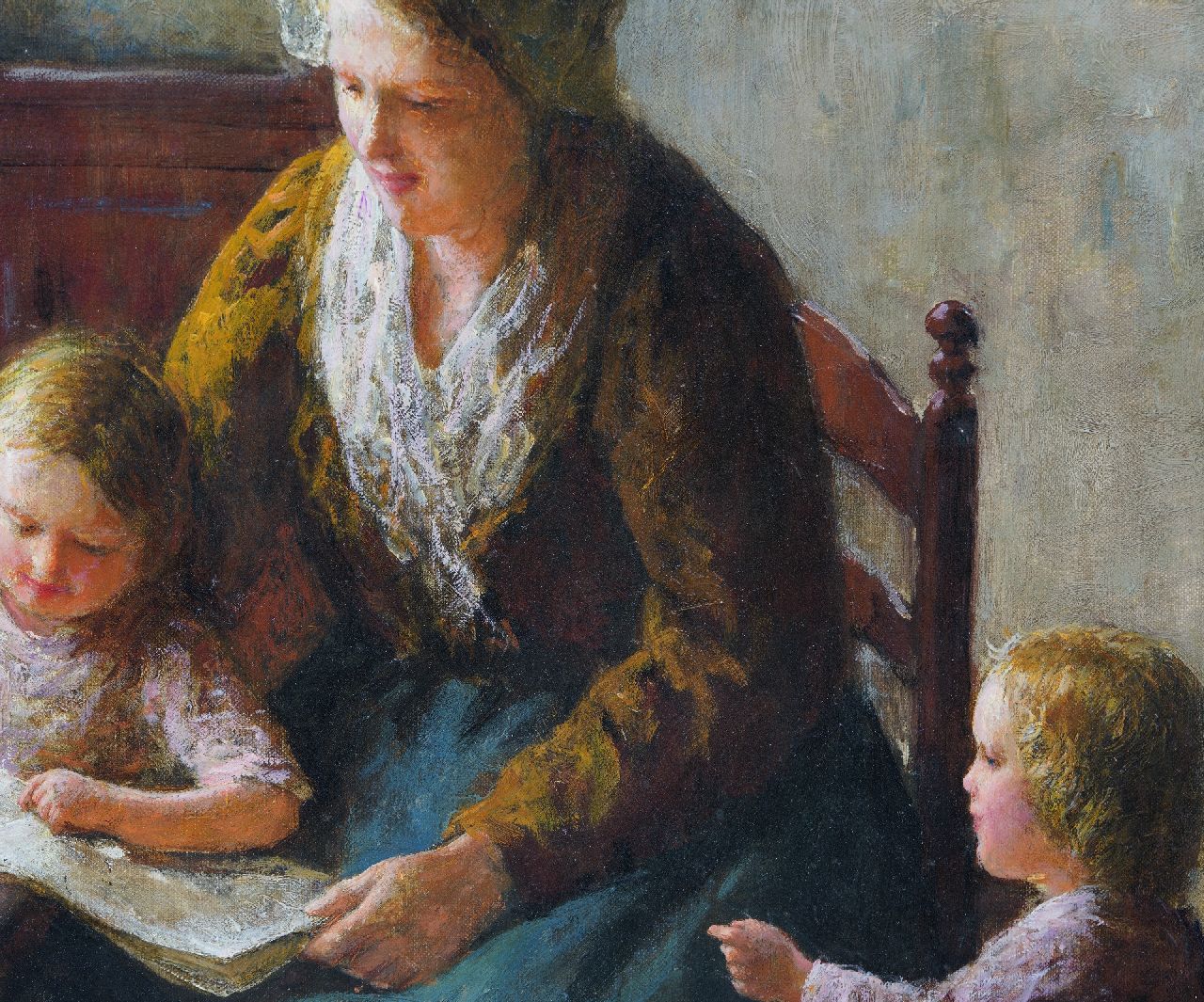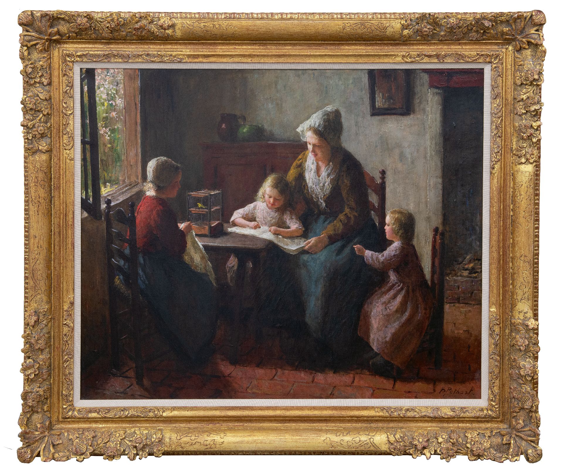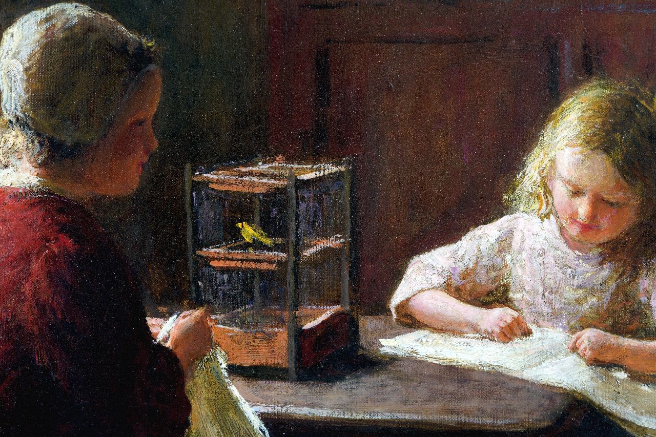 Der belgische Maler Bernard Pothast wohnte und arbeitete zunächst in Amsterdam und ließ sich dann 1911 in Laren nieder. Dort schloß er sich der Larense School an, wo Maler wie Hendrik Kever und Albert Neuhuys schon mal zu gehörten. Er malte da das Leben der schlichten Bauernleute innerhalb und außerhalb des Bauernhofes und auf dem Felde. Namentlich seine Innnenräume mit Bäuerinnen und Kindern strahlen eine abgeklärte Ruhe aus.