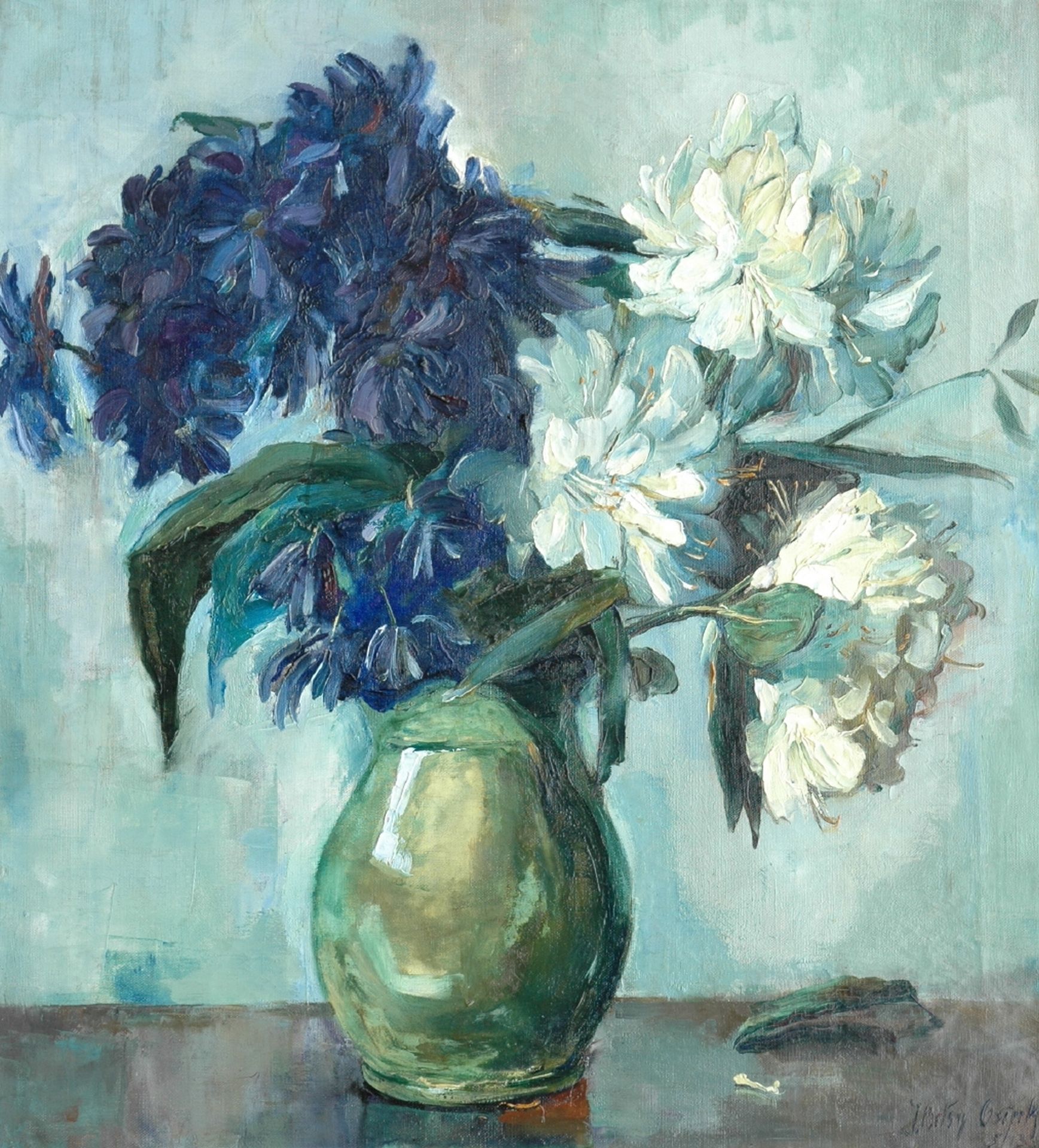 Betsy Osieck Kunstwerk • Gemälde • zuvor zu verkaufen Rhododendron branches in a vase