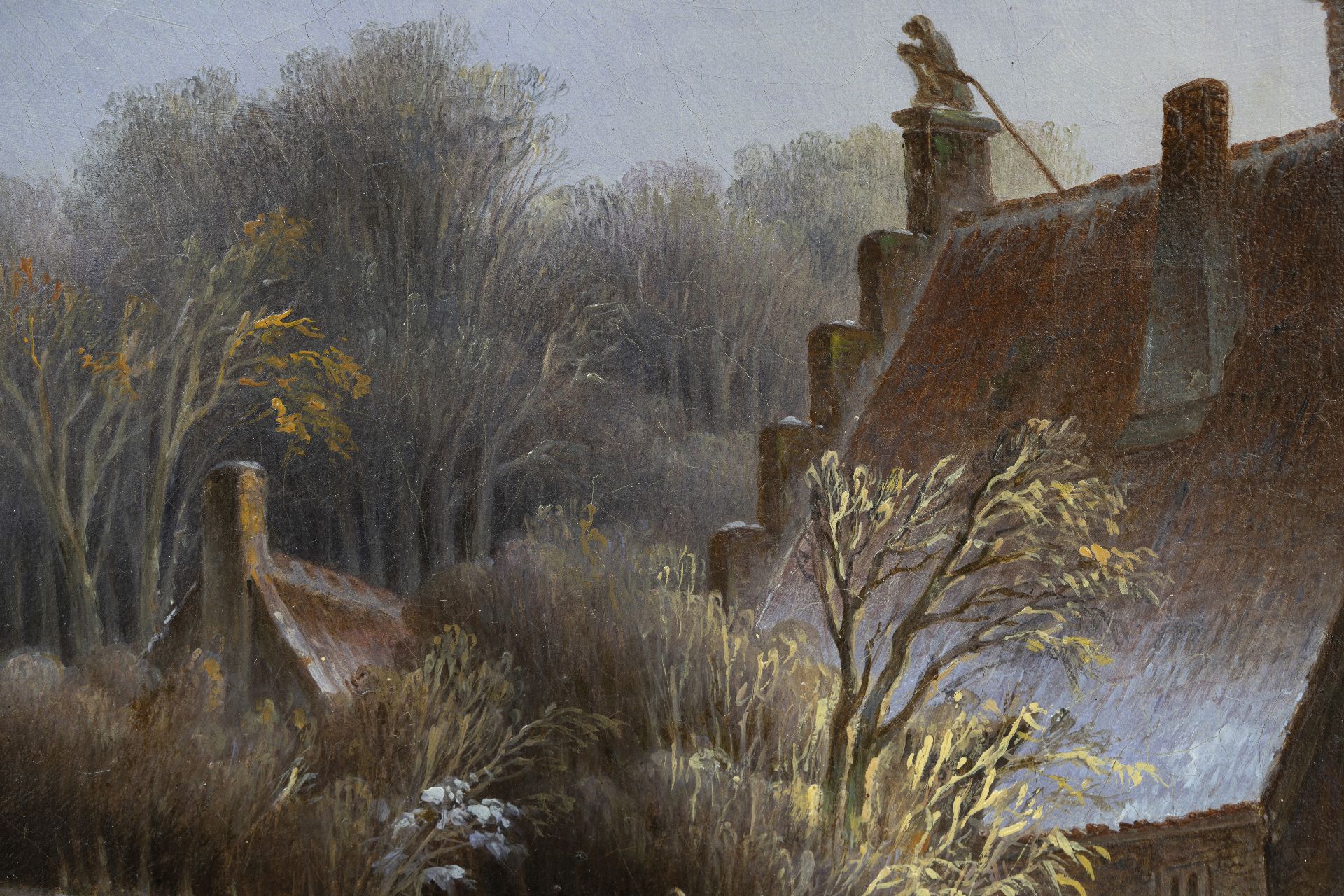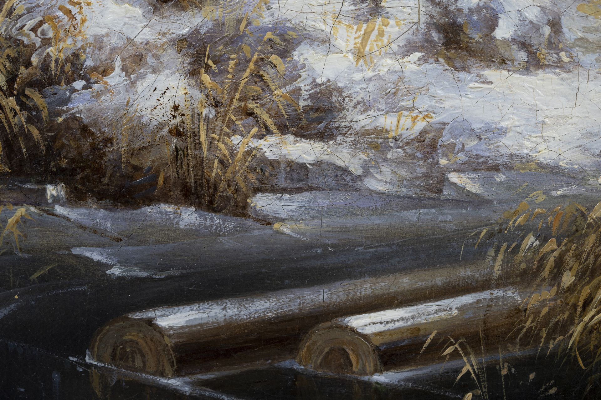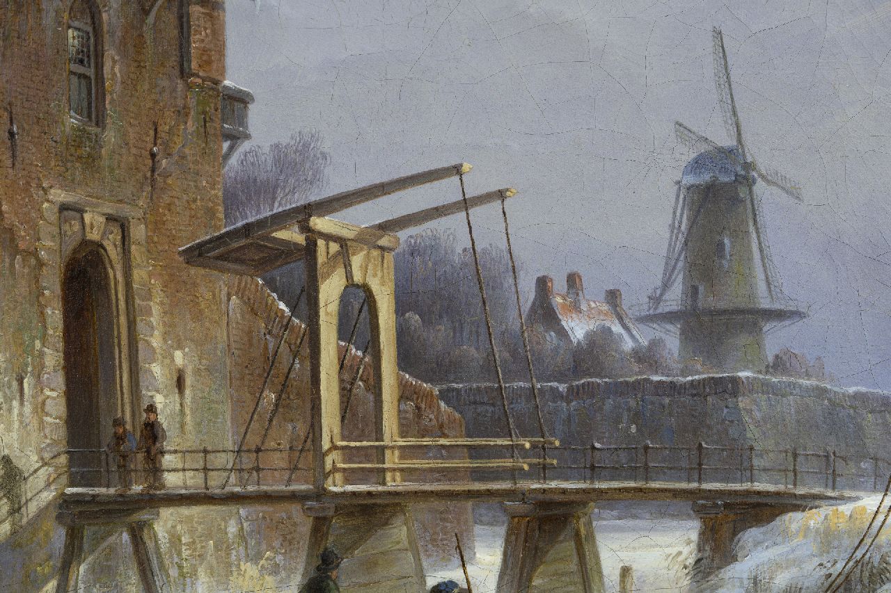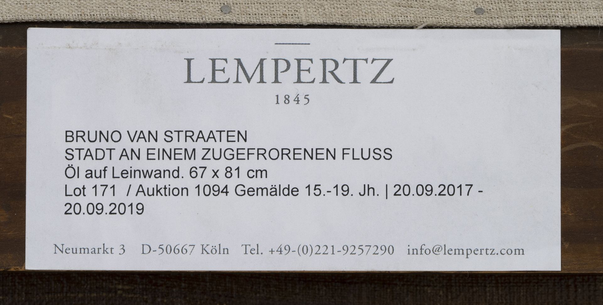 Bruno van Straaten Kunstwerk • Gemälde • zuvor zu verkaufen Stadt an einem zugefrorenen Kanal mit Schlittschuhläufern (möglich Utrecht)