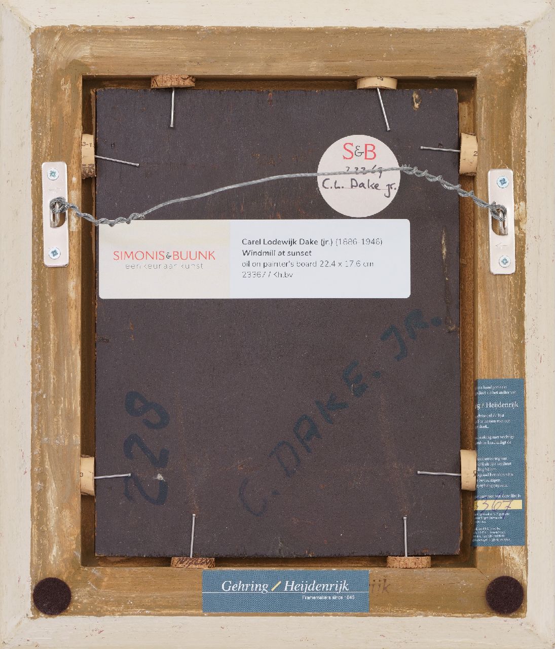 Carel Lodewijk Dake jr. Kunstwerk • Gemälde • zuvor zu verkaufen Windmühle bei Sonnenuntergang