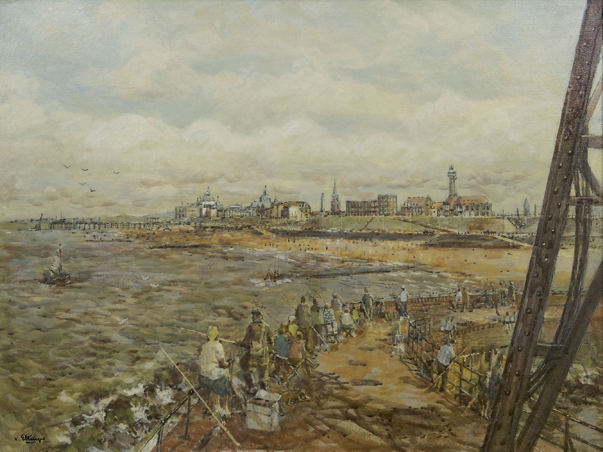 Carel van Ettinger Kunstwerk • Gemälde • zuvor zu verkaufen Strandpromenade in Scheveningen ab den Hafendamm