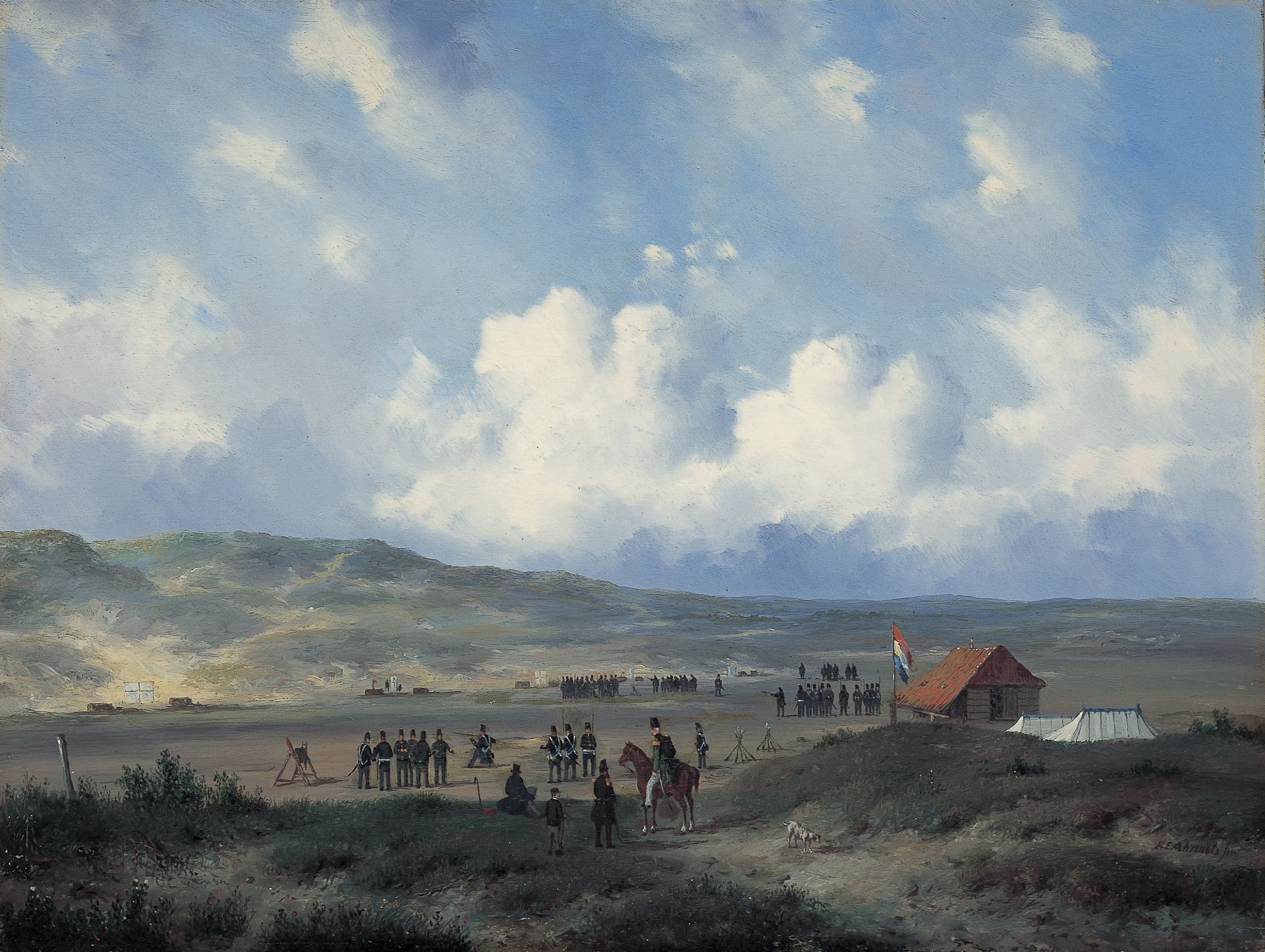 Carl Eduard Ahrendts Kunstwerk • Gemälde • zuvor zu verkaufen Infantry at the shooting-range in the dunes near Waalsdorp