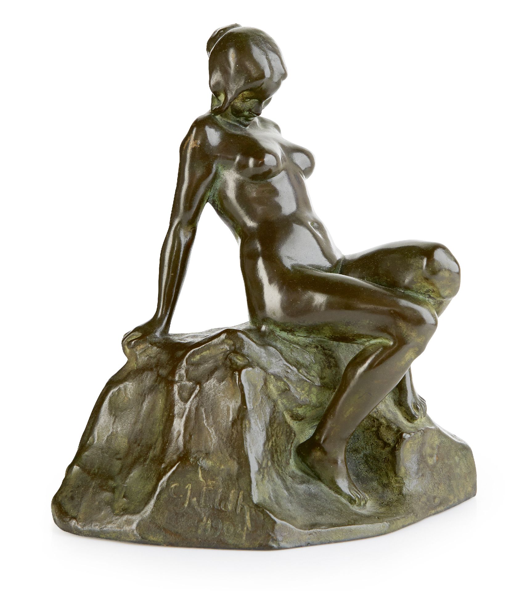 Bronze 25,0 x 22,5 cm, Unterzeichnet auf der Basis und datiert 1904