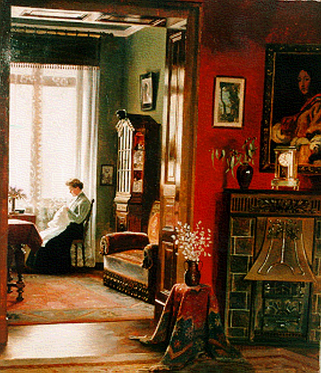 Murdfield C.  | Carl Murdfield, A seamstress in an interior, Öl auf Leinwand 72,0 x 62,5 cm, signed l.r.