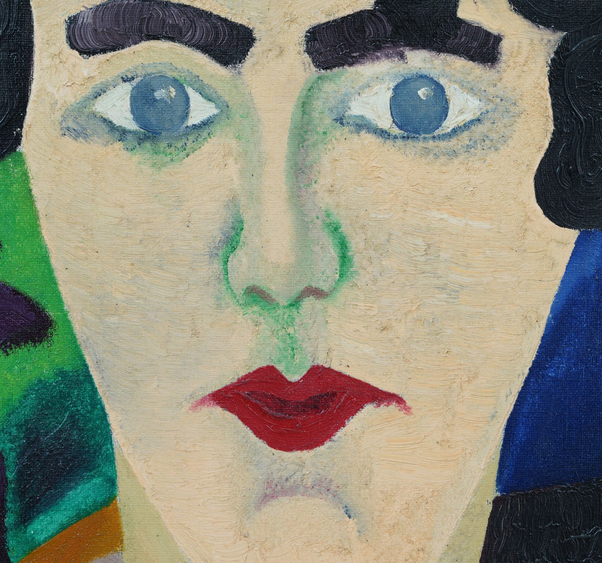 Das gewagte 'Selbstporträt als Frau'– so sah er sich selbst – zeugt vom 'entarteten' Stil, den Gaupp nach seiner Flucht in die Niederlande im Jahr 1938 entwickelte und der im Laufe der Jahre immer surrealer und bedrohlicher wurde.