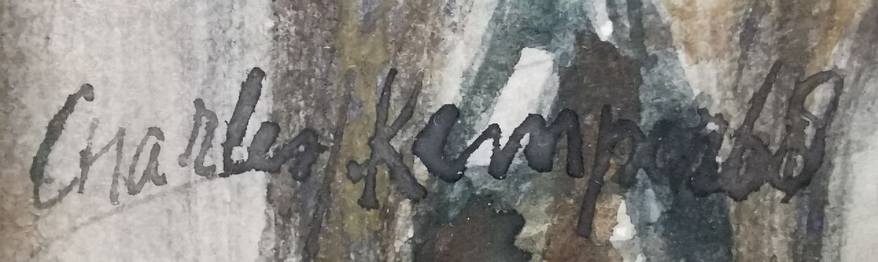Der Rotterdamer Maler Charles Kemper besuchte in seinem Geburtsort Die Akademie und nahm dann (1947) unterricht bei H.F. Boot in Haarlem. Er malte und aquarellierte die Stadt, Häfen, Figuren und Porträts. Ein separates Genre darin bilden seine Einrichtungen von Kneipen und Lokalen. Ab 1951 gehörte Kemper mit u.a.Kees Franse, Jan Goedhart, Ed van Zanden und nachher auch Jan Burgerhout, zu der Rotterdamer Expositionsgruppe Argus. Sein Interesse für die vorrückende Stadt, die industrielle Betriebsamkeit und das Zugrundegehen des Landlebens machten ihn wie kein anderer geeignet als Zeichner für den topographischen Atlas vom Rotterdamer Stadtarchiv.