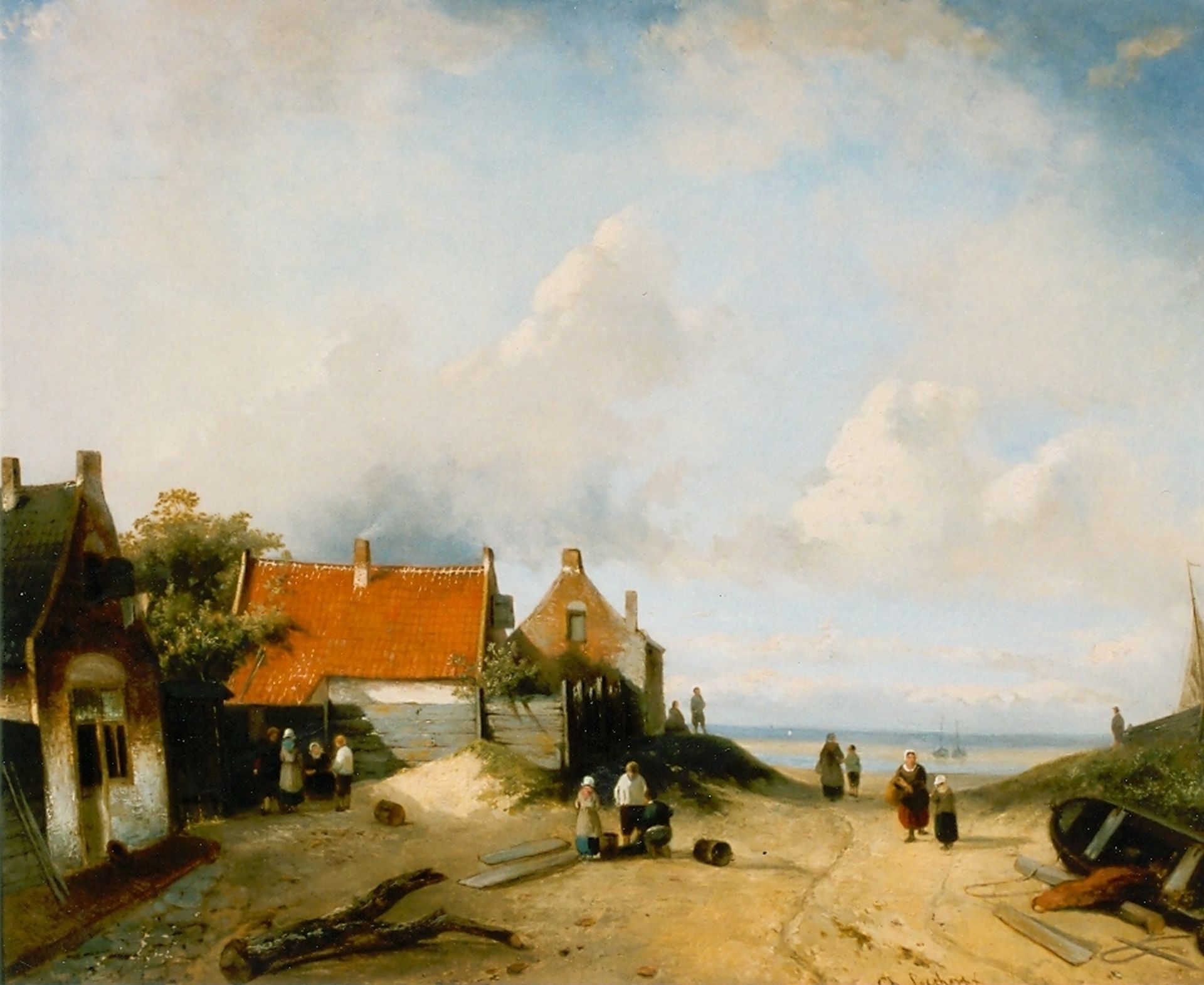 Charles Leickert war kurzzeitig Schüler von W.J.J. Nuijen und ab 1839 von Andreas Schelfhout. Gerade dieser letztere Meister hatte großen Einfluss auf sein Werk. Leickert malte wunderschöne holländische Eisszenen, Sommerlandschaften und Flussansichten, in die er verschiedenste Motive aus seinen Skizzenbüchern einfließen ließ. Nach 1845 malte er auch Strandszenen und Stadtansichten. Die Anziehungskraft seiner Bilder wird zum Teil durch die Beleuchtung und stark erzählerische Details bestimmt. Leickert war ein echter Handwerker, der geschickt die richtige Stimmung wiedergeben konnte und so den Geschmack des Publikums spürte. Seine Wintergesichter sind wirklich kalt, seine Sommer sonnig und grün.