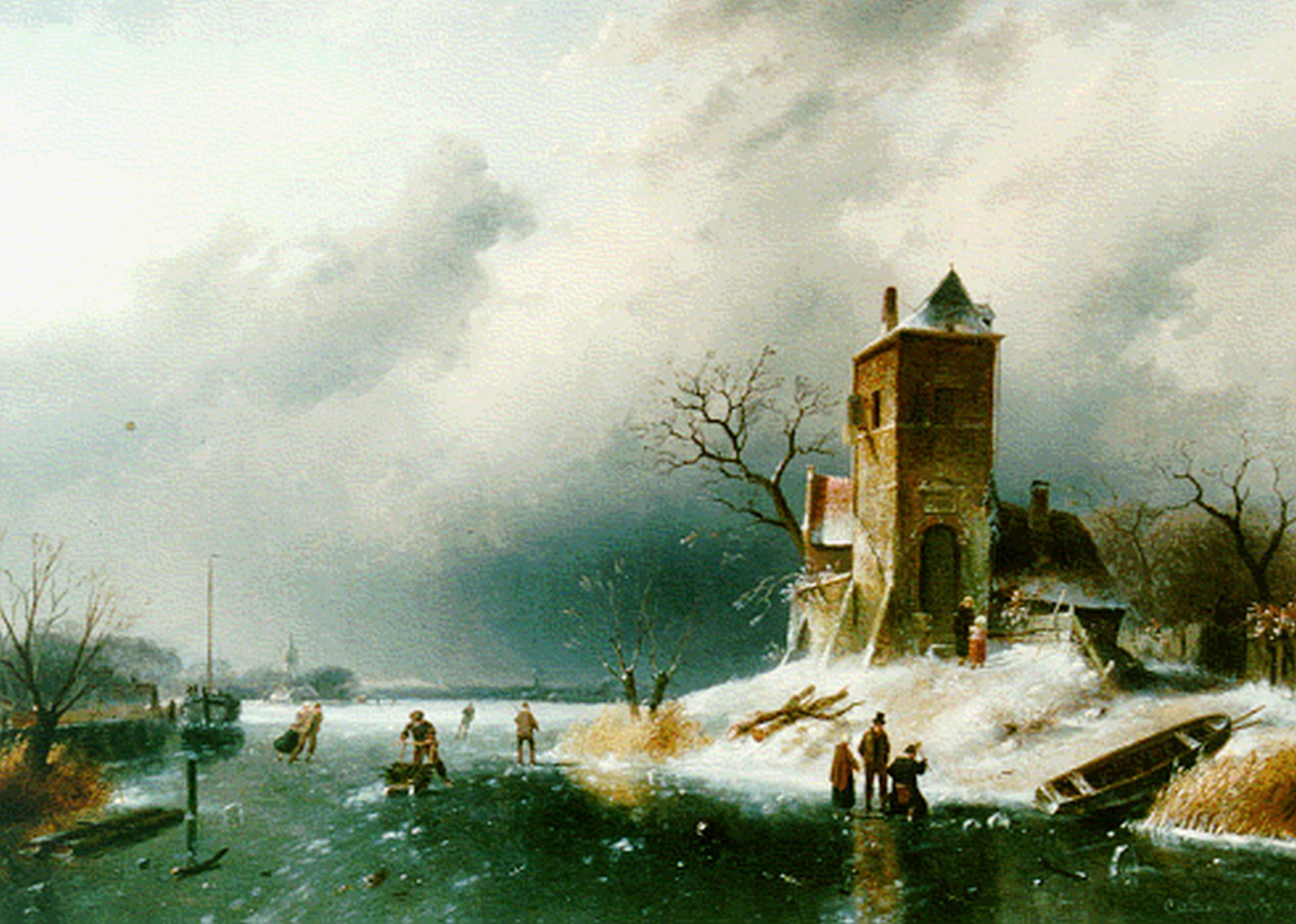 Charles Leickert Kunstwerk • Gemälde • zuvor zu verkaufen A winter landscape with skaters on the ice