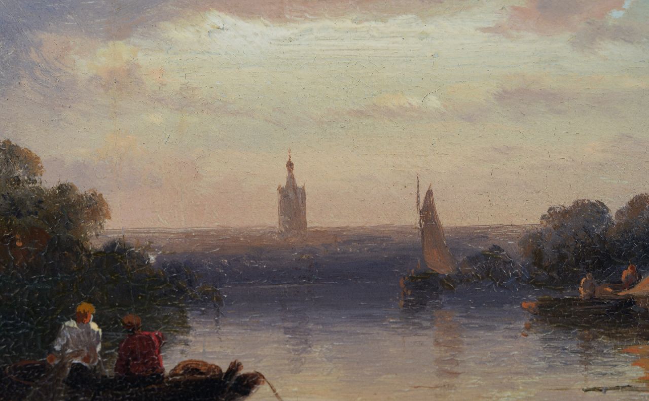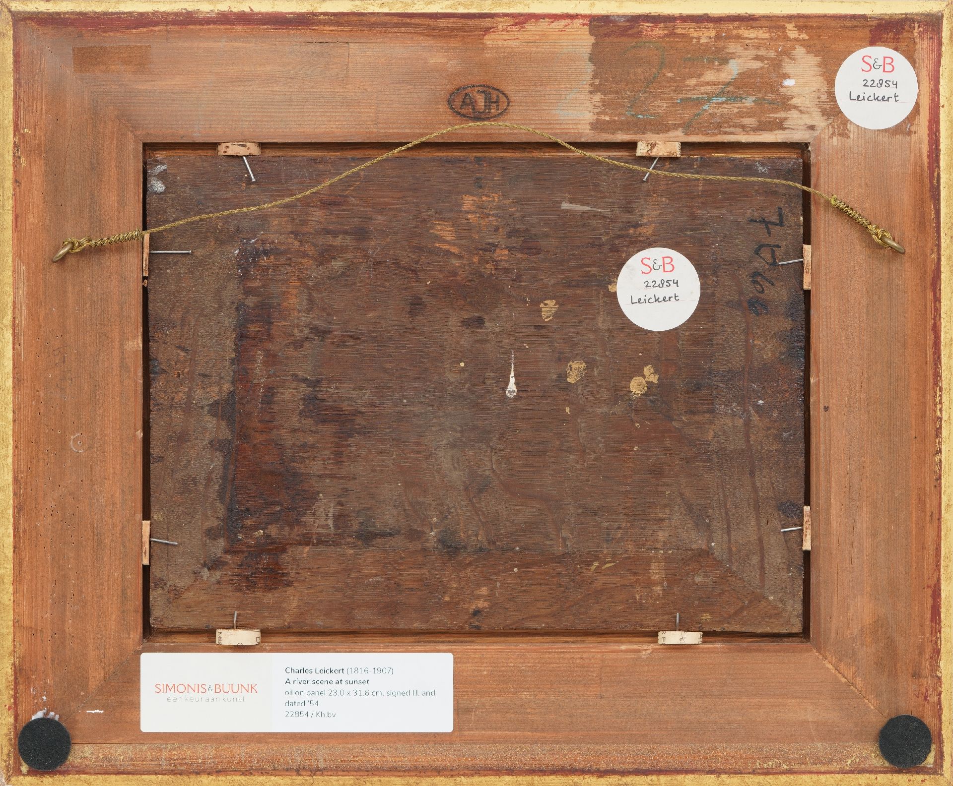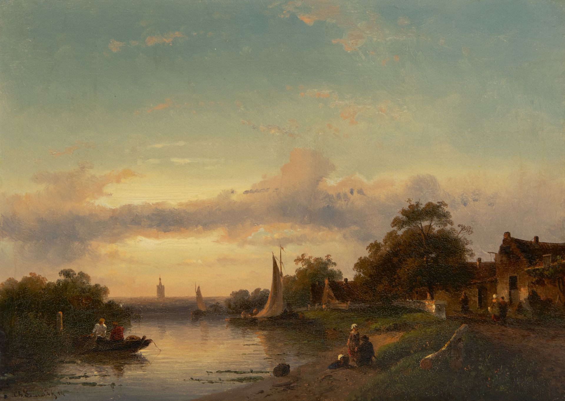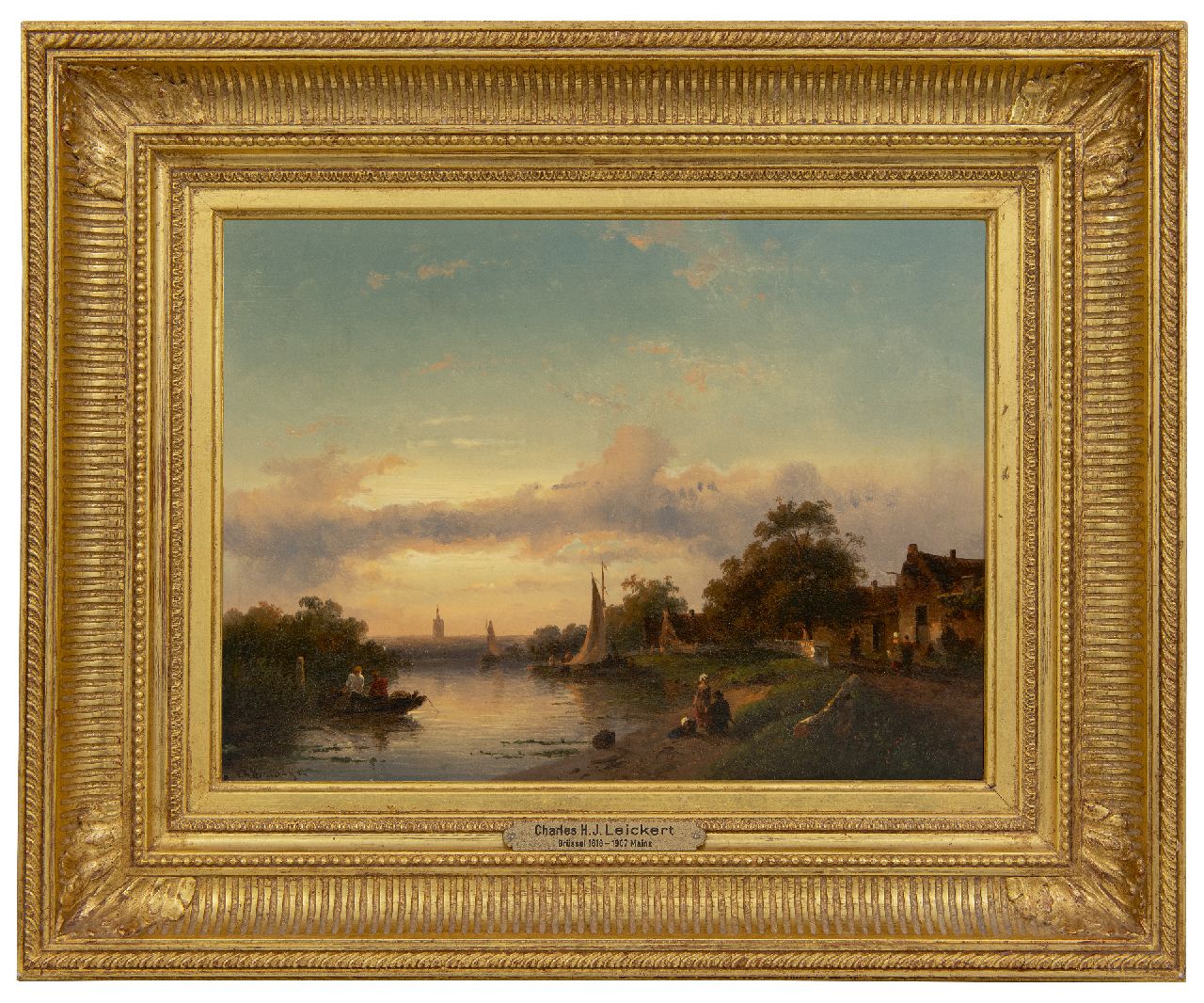 Charles Leickert Kunstwerk • Gemälde • zu verkaufen Flussansicht bei Sonnenuntergang