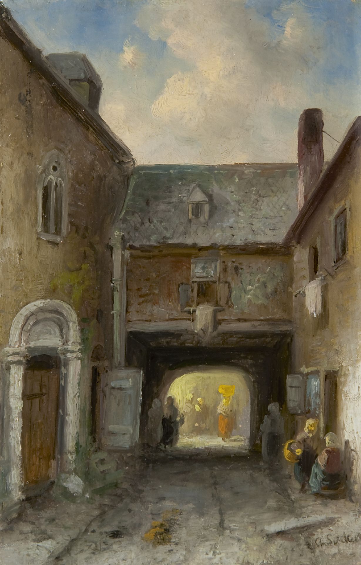 Charles Leickert Kunstwerk • Gemälde • zu verkaufen Durchblick in einer Stadt