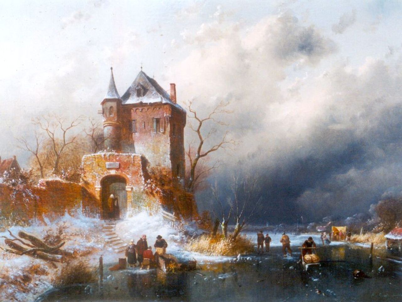 Charles Leickert Kunstwerk • Gemälde • zuvor zu verkaufen Figures on a frozen waterway