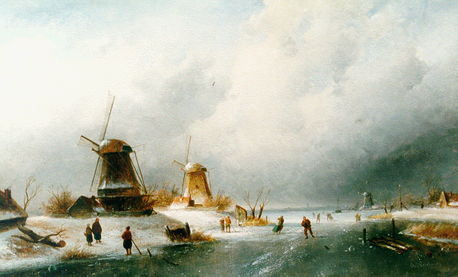 Charles Leickert | Eisvergnügen beim 'Leidsche Hek' in Oegstgeest (nur zusammen mit Sommeranhänger zu verkaufen), Öl auf Holz, 25,0 x 40,0 cm, Unterzeichnet u.l.