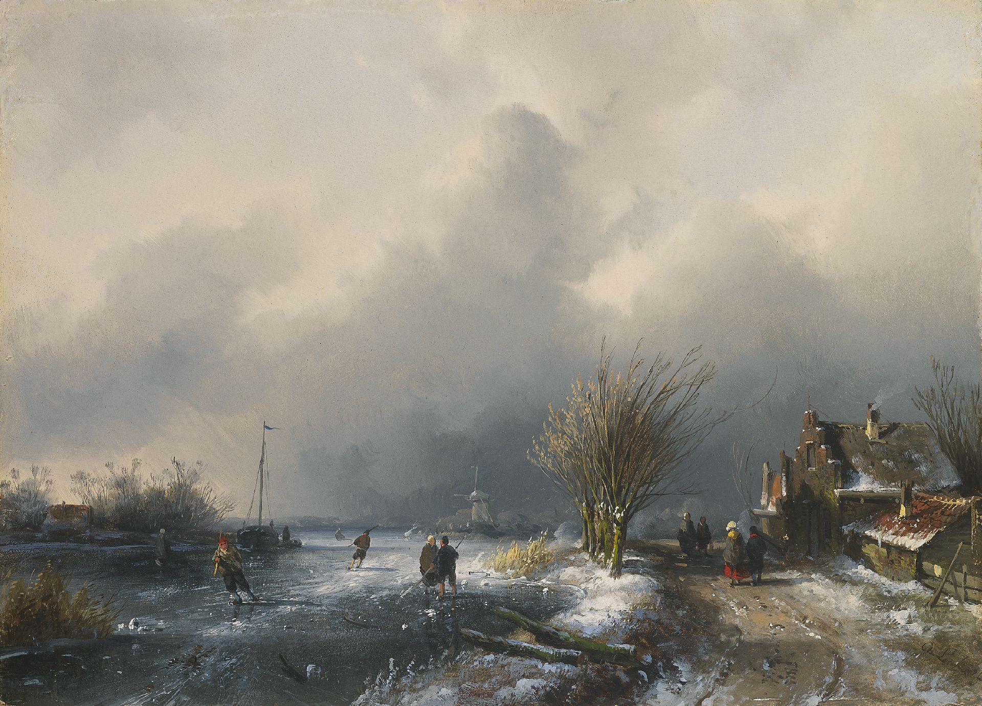 Charles Leickert Kunstwerk • Gemälde • zuvor zu verkaufen Ice scene with snowstorm approaching
