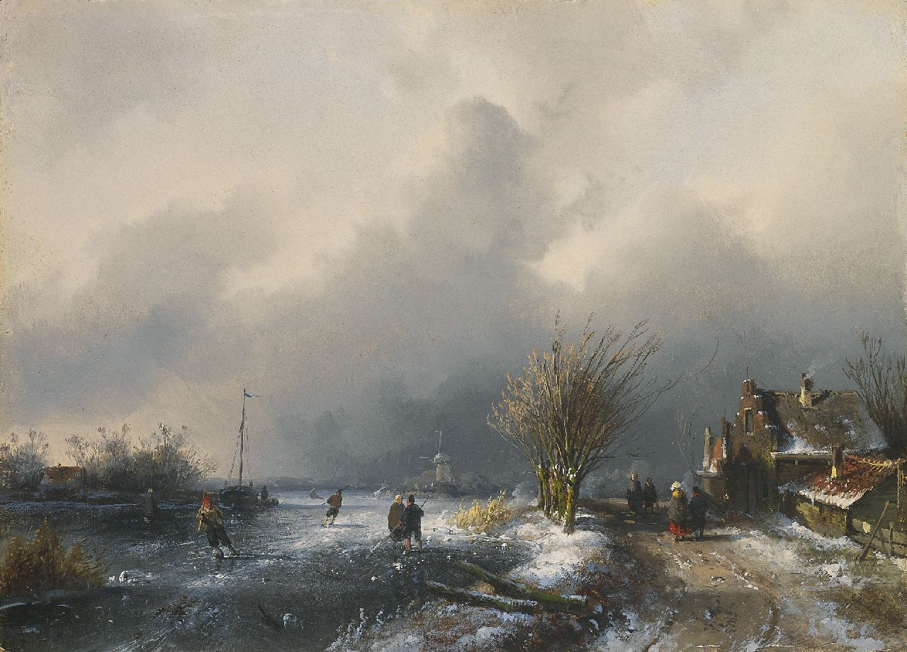 Charles Leickert war kurzzeitig Schüler von W.J.J. Nuijen und ab 1839 von Andreas Schelfhout. Gerade dieser letztere Meister hatte großen Einfluss auf sein Werk. Leickert malte wunderschöne holländische Eisszenen, Sommerlandschaften und Flussansichten, in die er verschiedenste Motive aus seinen Skizzenbüchern einfließen ließ. Nach 1845 malte er auch Strandszenen und Stadtansichten. Die Anziehungskraft seiner Bilder wird zum Teil durch die Beleuchtung und stark erzählerische Details bestimmt. Leickert war ein echter Handwerker, der geschickt die richtige Stimmung wiedergeben konnte und so den Geschmack des Publikums spürte. Seine Wintergesichter sind wirklich kalt, seine Sommer sonnig und grün.