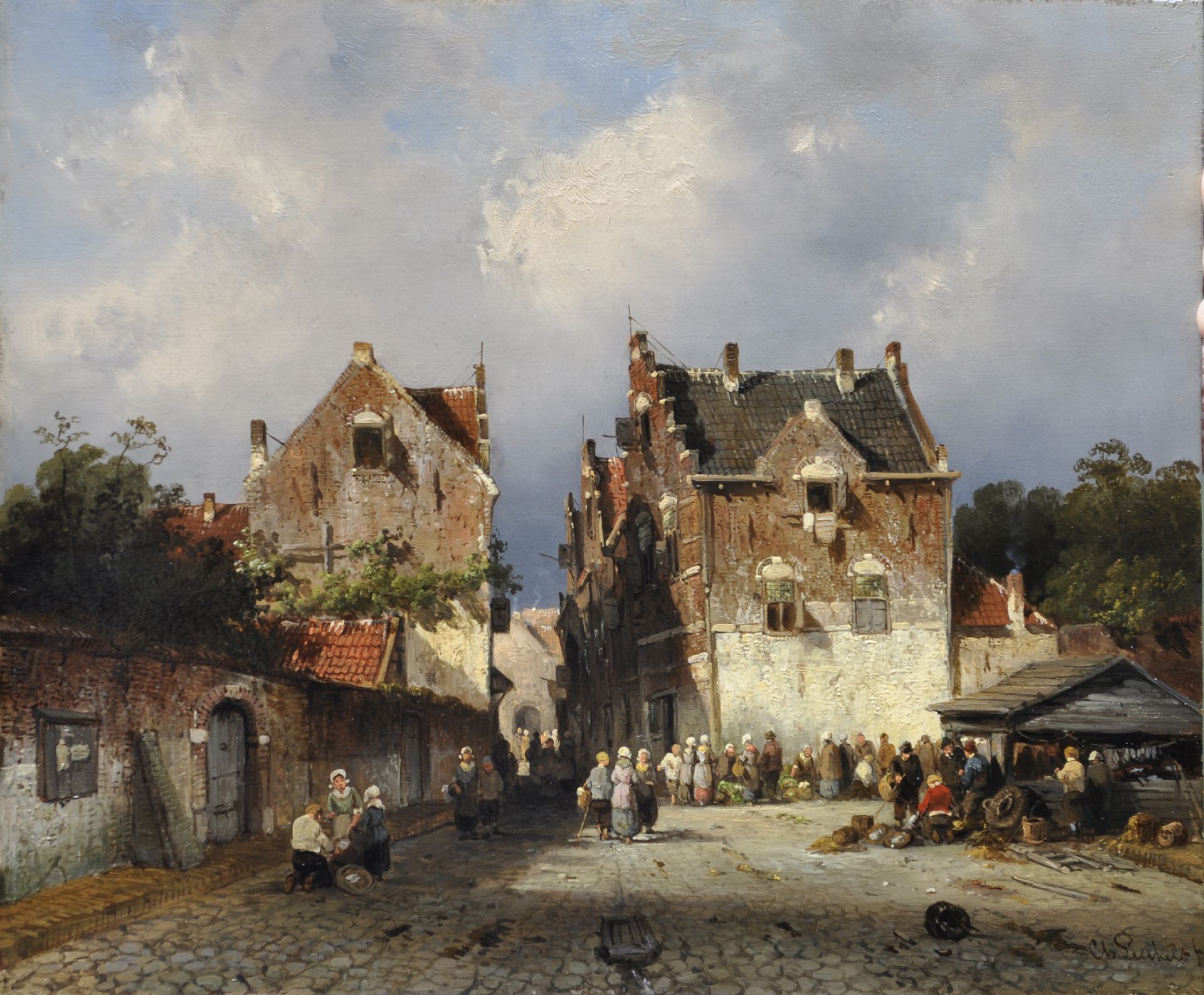 Charles Leickert Kunstwerk • Gemälde • zuvor zu verkaufen Stadtansicht mit Gemüseverkäufern