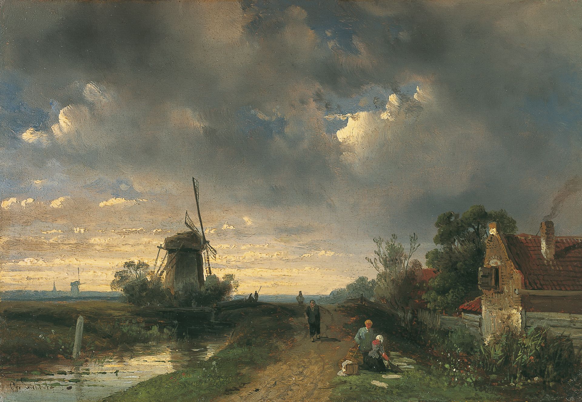 Charles Leickert war kurzzeitig Schüler von W.J.J. Nuijen und ab 1839 von Andreas Schelfhout. Gerade dieser letztere Meister hatte großen Einfluss auf sein Werk. Leickert malte wunderschöne holländische Eisszenen, Sommerlandschaften und Flussansichten, in die er verschiedenste Motive aus seinen Skizzenbüchern einfließen ließ. Nach 1845 malte er auch Strandszenen und Stadtansichten. Die Anziehungskraft seiner Bilder wird zum Teil durch die Beleuchtung und stark erzählerische Details bestimmt. Leickert war ein echter Handwerker, der geschickt die richtige Stimmung wiedergeben konnte und so den Geschmack des Publikums spürte. Seine Wintergesichter sind wirklich kalt, seine Sommer sonnig und grün.