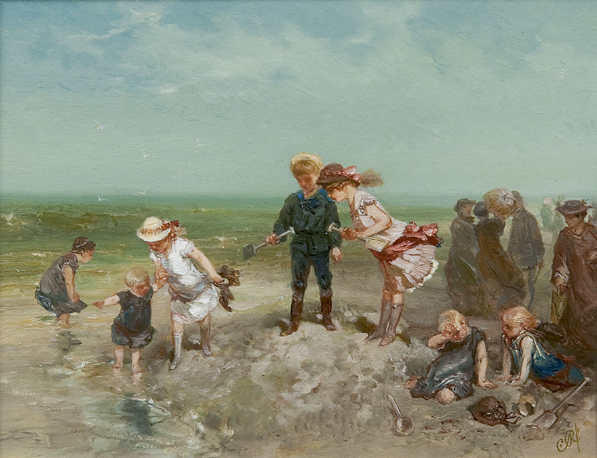 Charles Rochussen Kunstwerk • Gemälde • zuvor zu verkaufen Children playing on the beach