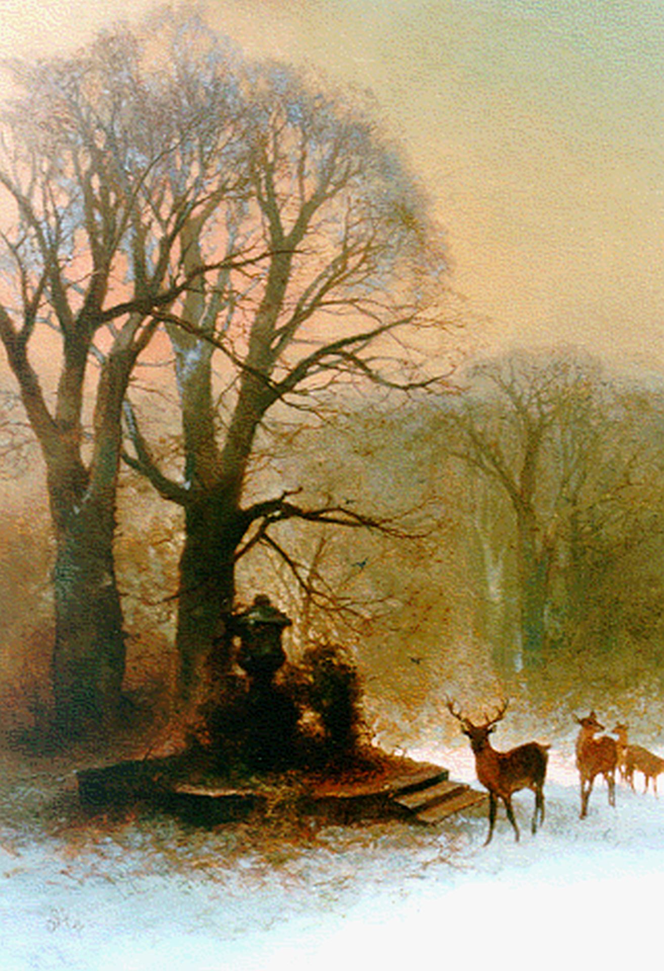 Charles Rochussen Kunstwerk • Gemälde • zuvor zu verkaufen Deer in a winter landscape