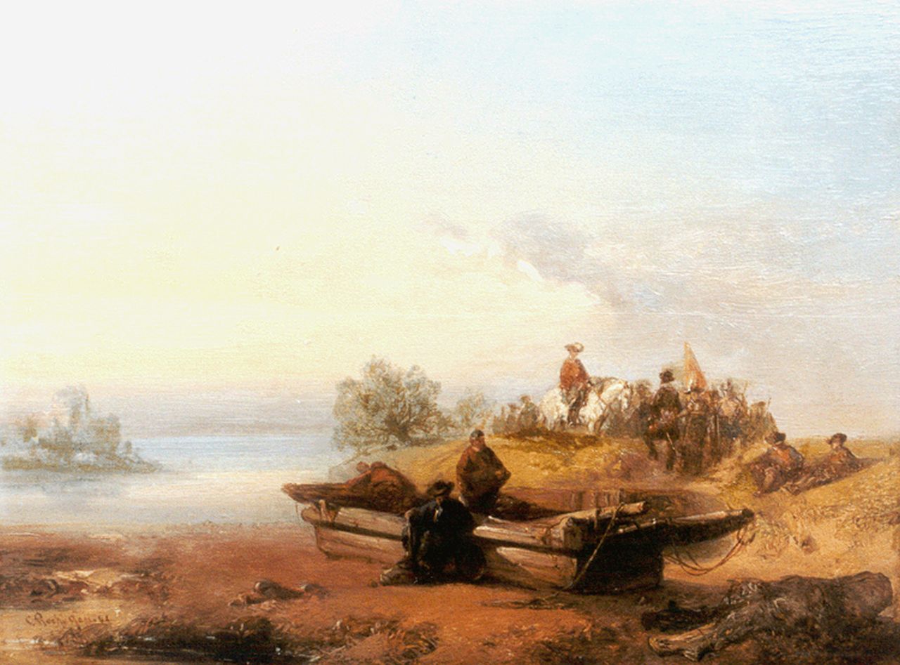 Charles Rochussen Kunstwerk • Gemälde • zuvor zu verkaufen Soldiers by a ferry