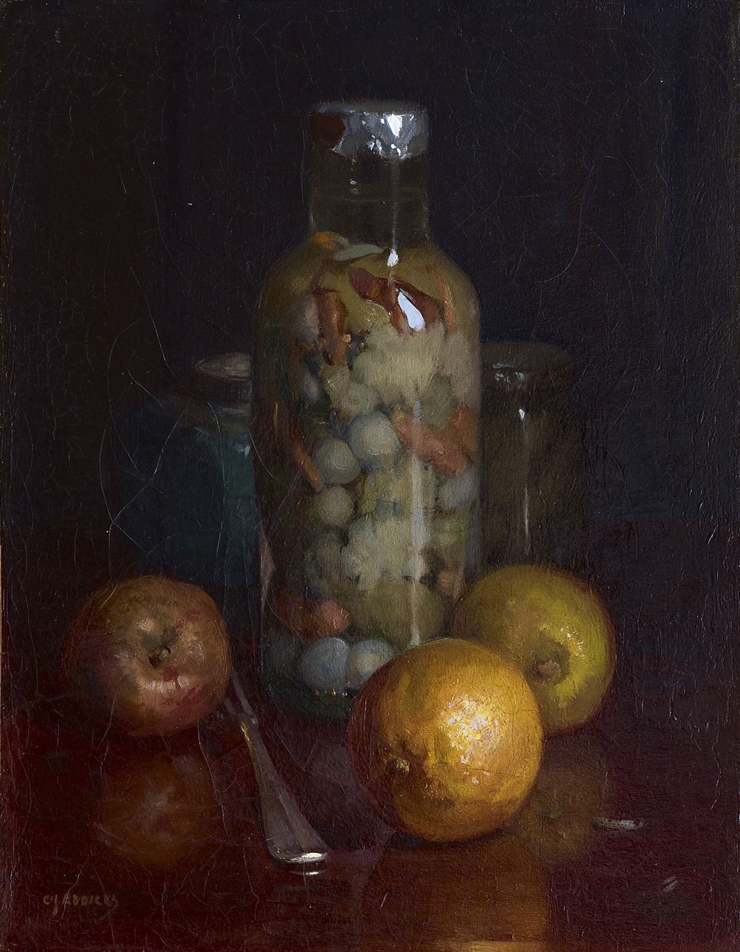 Christiaan Addicks Kunstwerk • Gemälde • zuvor zu verkaufen Stilleben mit Einmachglas und Obst