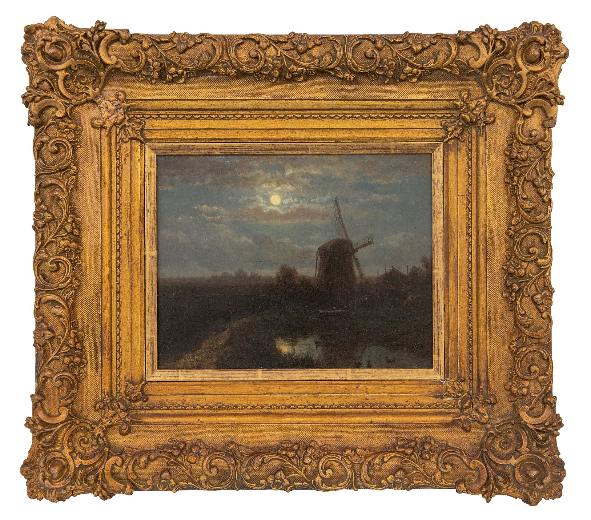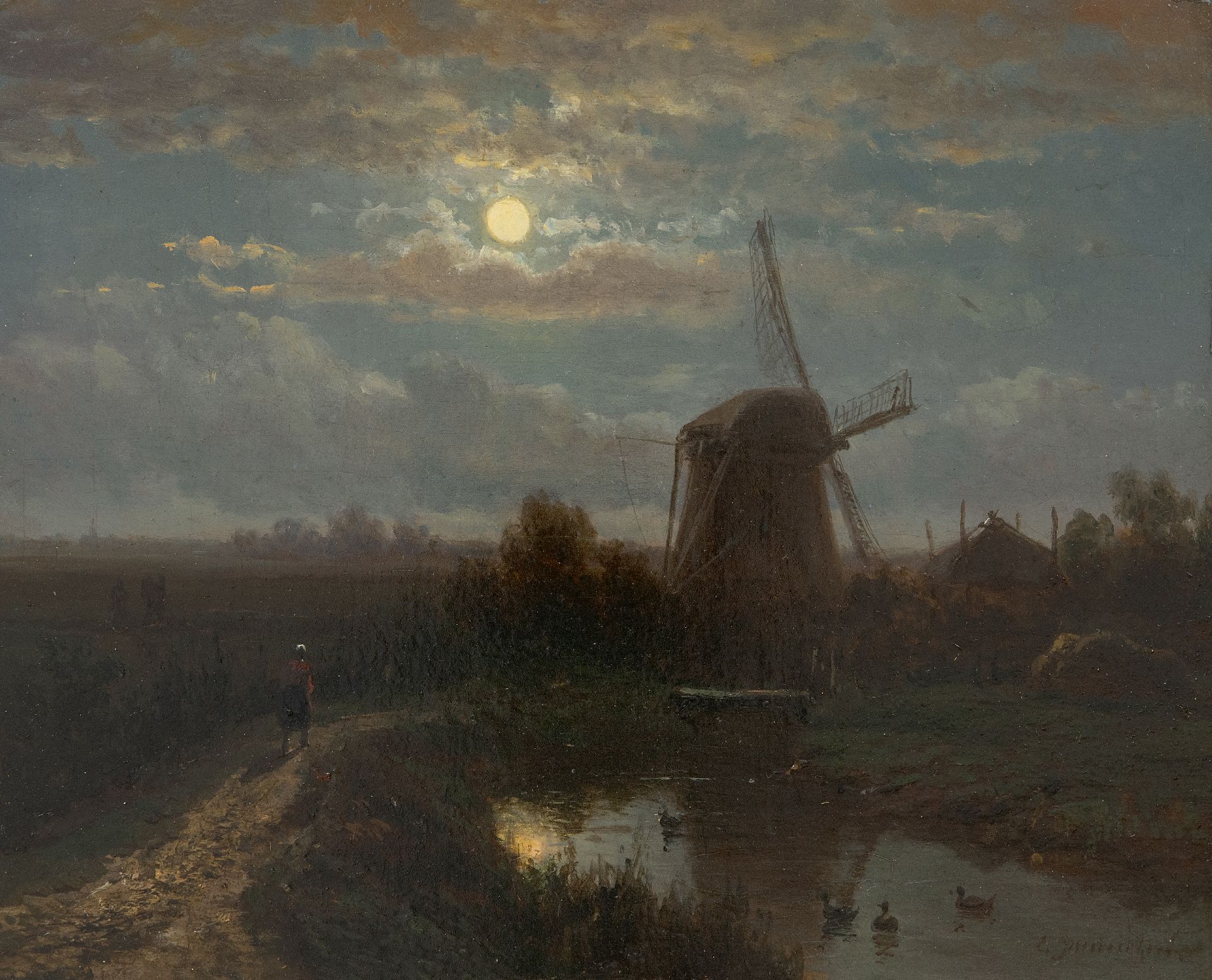 Christiaan Immerzeel Kunstwerk • Gemälde • zu verkaufen Mondscheinlandschaft mit Windmühle