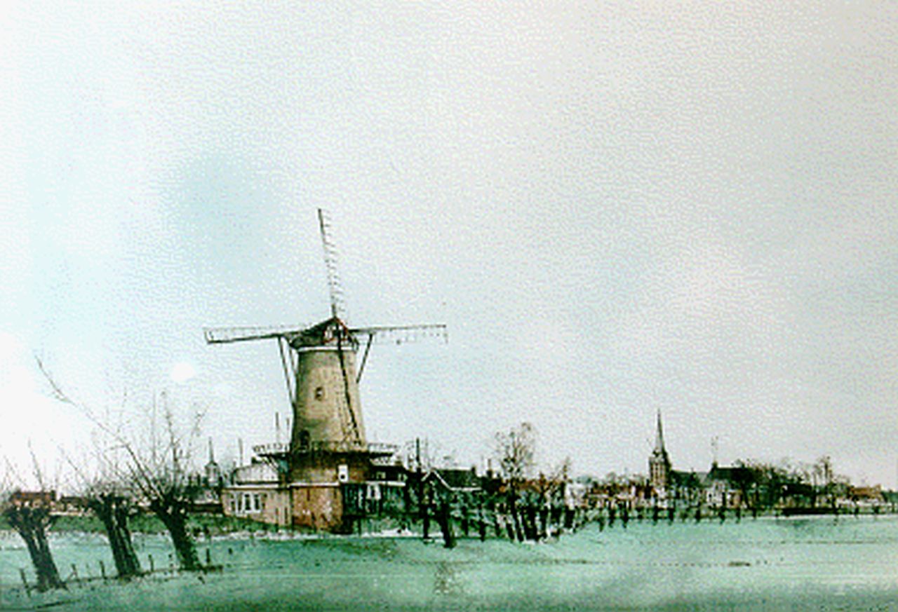 Ciano Siewert Kunstwerk • Aquarell • Zeichnung • zuvor zu verkaufen A windmill in a landscape