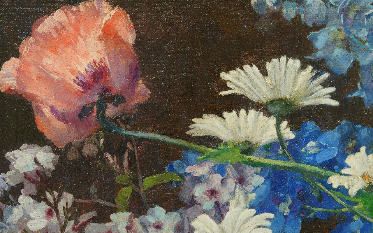 Clara von Sivers Kunstwerk • Gemälde • zu verkaufen Stillleben mit Blumen in einer Gießkanne