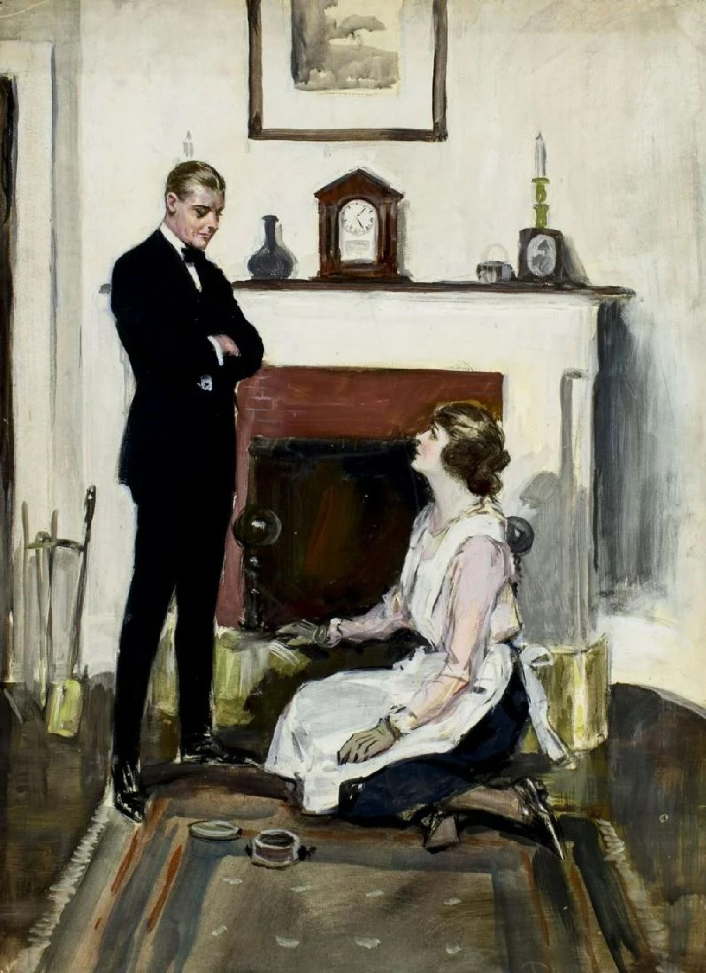 Clarence Underwood Kunstwerk • Aquarell • Zeichnung • zu verkaufen Gentleman and housemaid