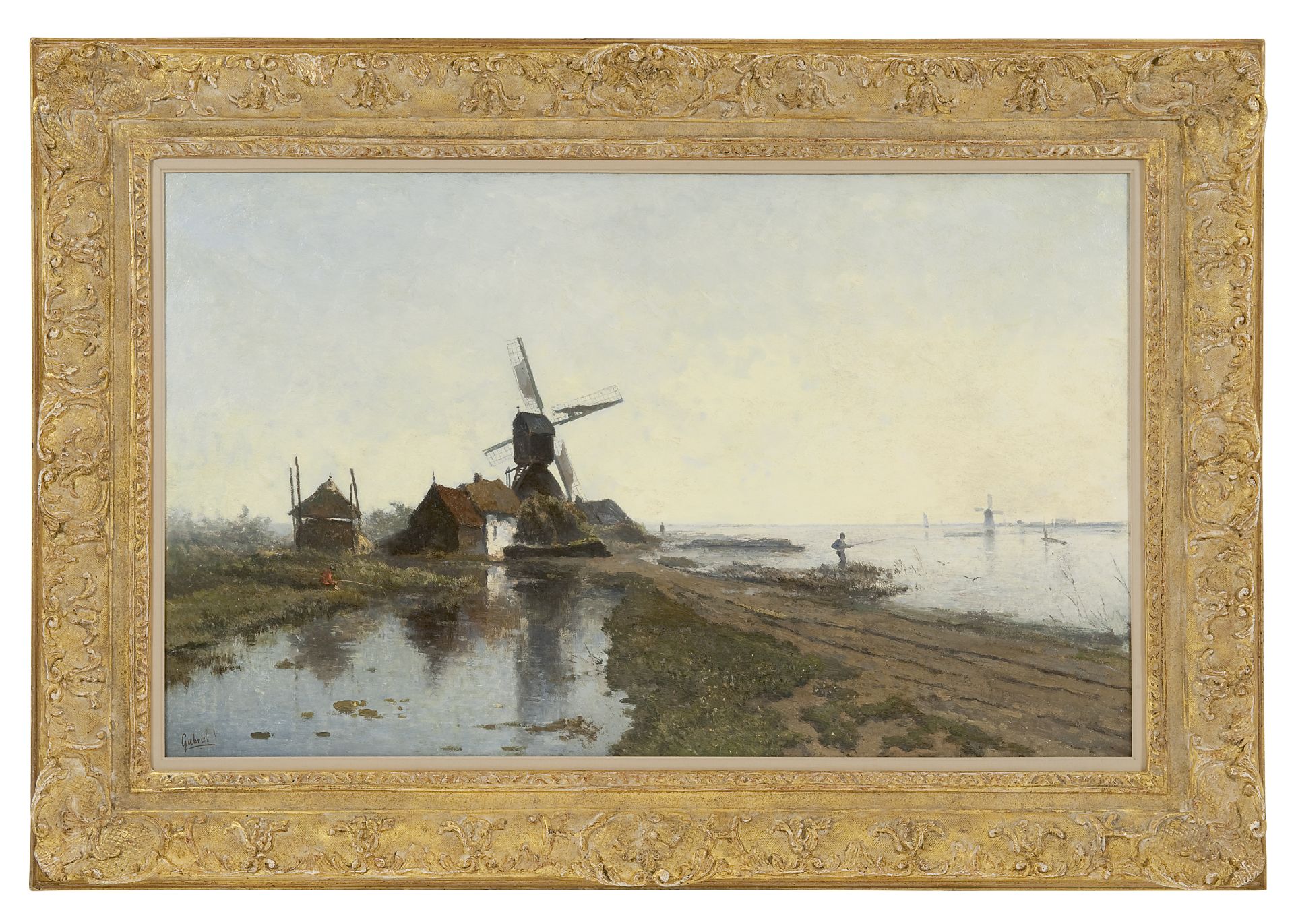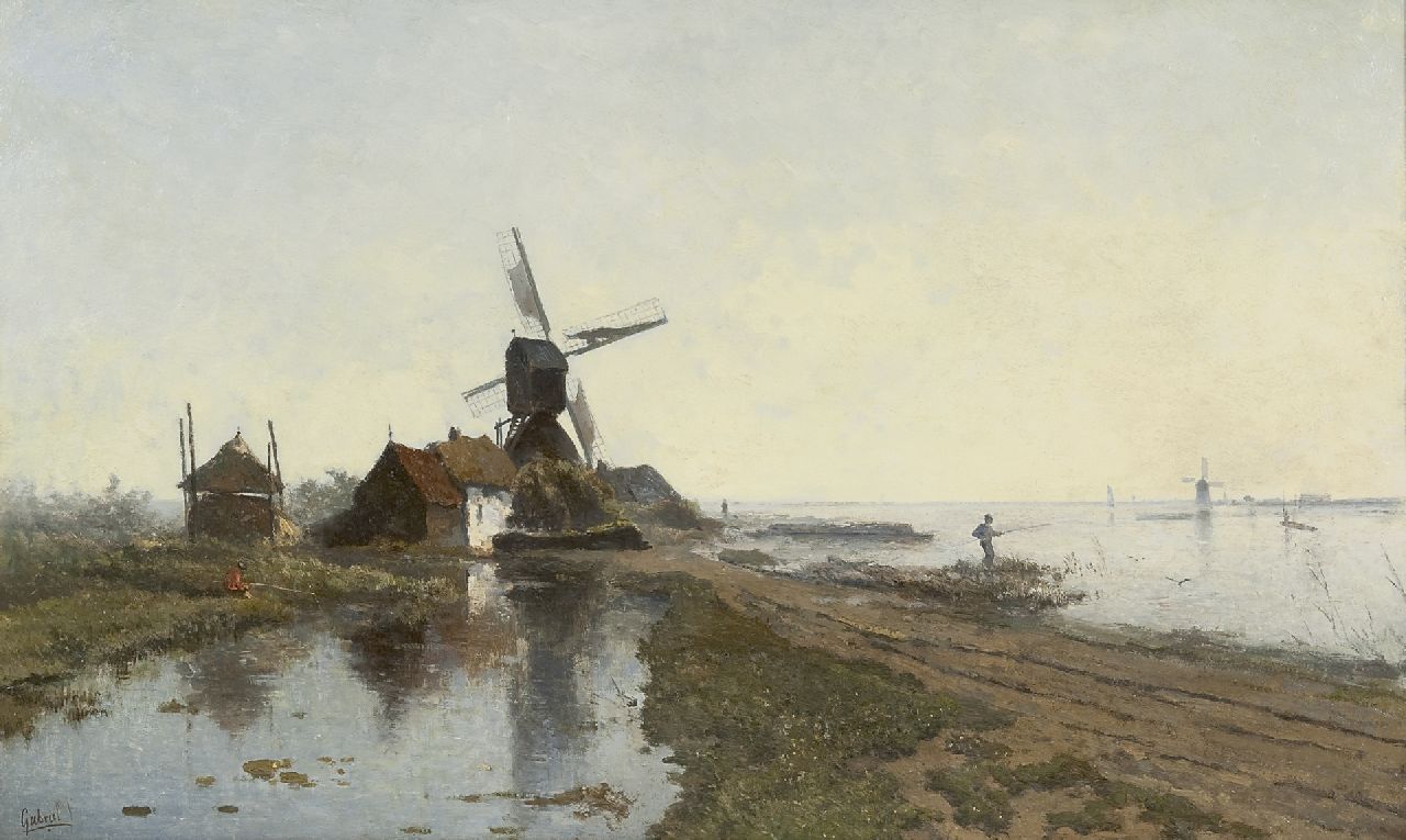Constan Gabriel (in der Literatur zu Unrecht lange Zeit Paul genannt) wurde wohl als der Porträtmaler des holländischen Polders wie kein anderer gekennzeichnet. Die Malerei in der Natur lernte er in Oosterbeek, wo er sich einige Zeit zusammen mit J.W. Bilders, J.H.L. de Haas und Kruseman van Elten aufhielt. Zwischen 1860 und 1884 wohnte er in Brüssel. Davon kehrte er regelmässig zurück um die holländischen Gewässer und Polder zu malen. Bis zu den achtziger Jahren war das vor allen Dingen dass Gebiet um Kortenhoef, Abcoude und Vreeland. Nachdem er sich 1884 in Scheveningen niederliess arbeitete er viel in der Umgebung Von Haag. Schliesslich entwickelte er sich zu einem der meist massgebenden Malern der Haagse School.