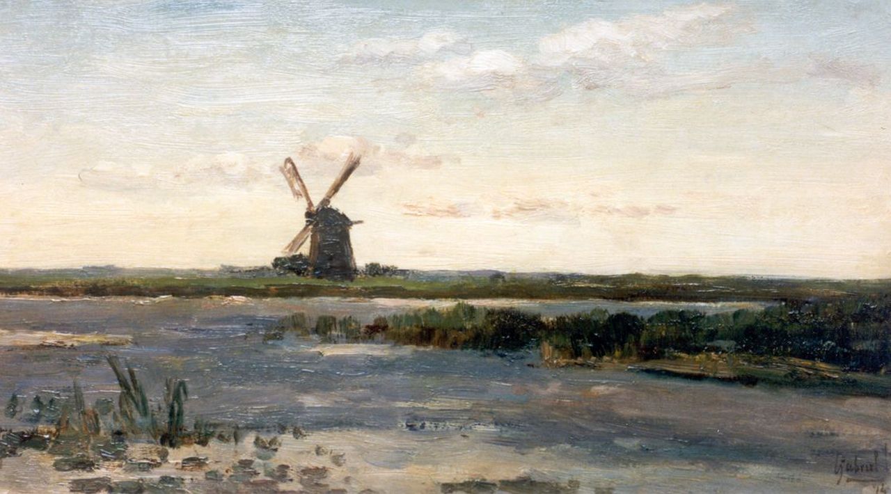 Constan Gabriel Kunstwerk • Gemälde • zuvor zu verkaufen A polder landscape with a windmill