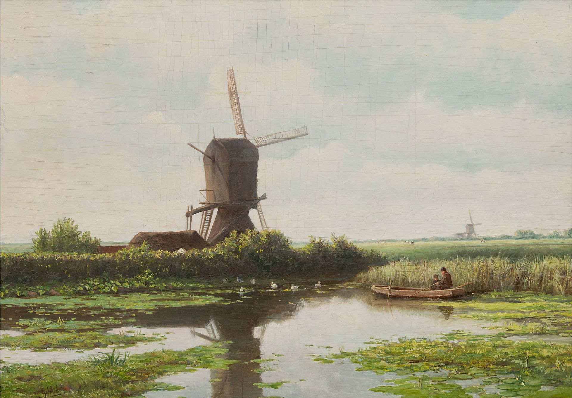 Constan Gabriel Kunstwerk • Gemälde • zu verkaufen Windmühle in einer Polderlandschaft