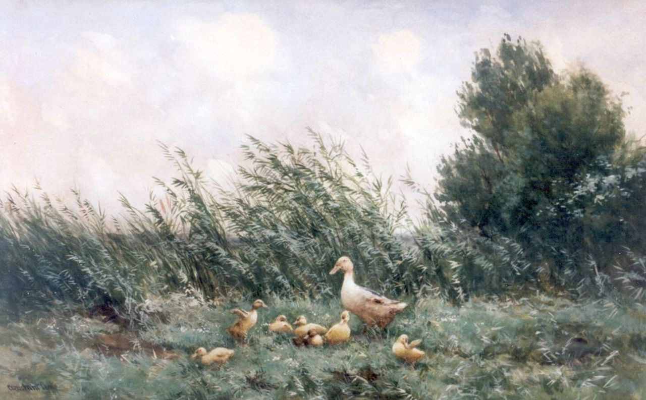 Constant Artz malte die niederländische Landschaft mit Weiden und Windmühlen, war aber vor allem für seine Wasseransichten mit Enten in all ihren Aktionen bekannt. Er hat dieses Motiv auf unzählige Arten gemalt und zeigt sich als sehr guter Naturbeobachter. Artz war auch ein sehr fähiger Aquarellist. Er war der Sohn des Malers der Haager Schule, D.A.C. Artz.