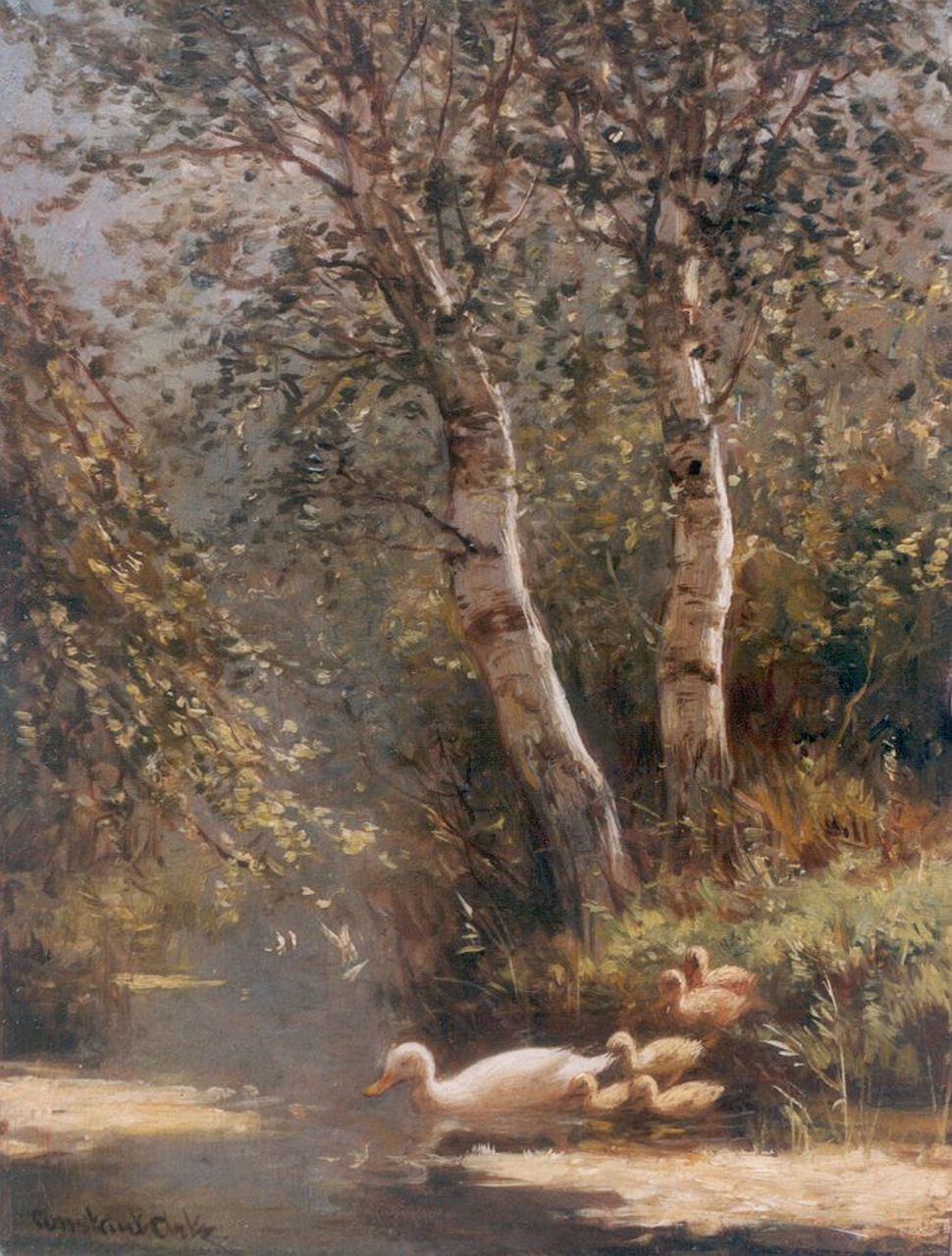 Constant Artz Kunstwerk • Gemälde • zuvor zu verkaufen Duck with ducklings watering