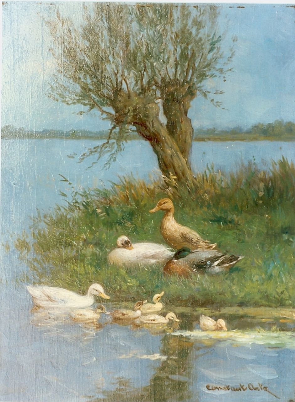 Constant Artz | Entenfamilie am Teich, Öl auf Holz, 50,1 x 40,2 cm, Unterzeichnet l.u. und ohne Rahmen