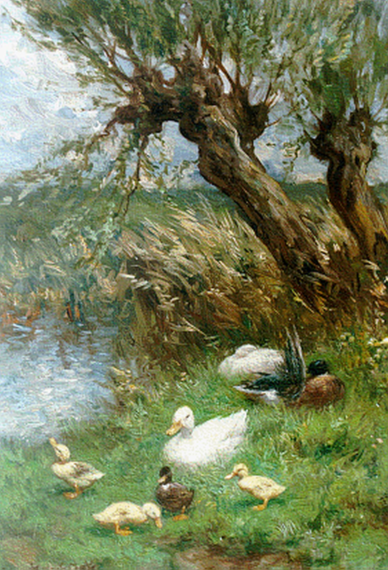 Constant Artz Kunstwerk • Gemälde • zuvor zu verkaufen Ducks on the riverbank