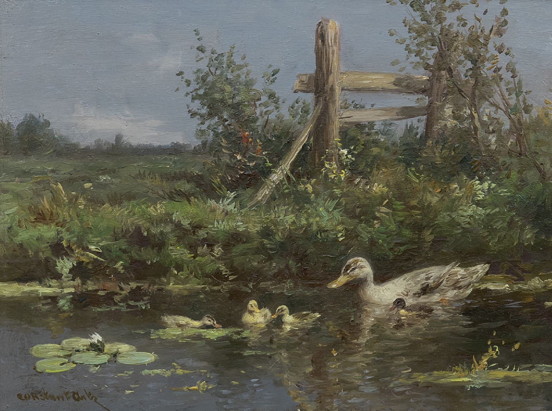 Constant Artz Kunstwerk • Gemälde • zuvor zu verkaufen Entenfamilie am Ufer