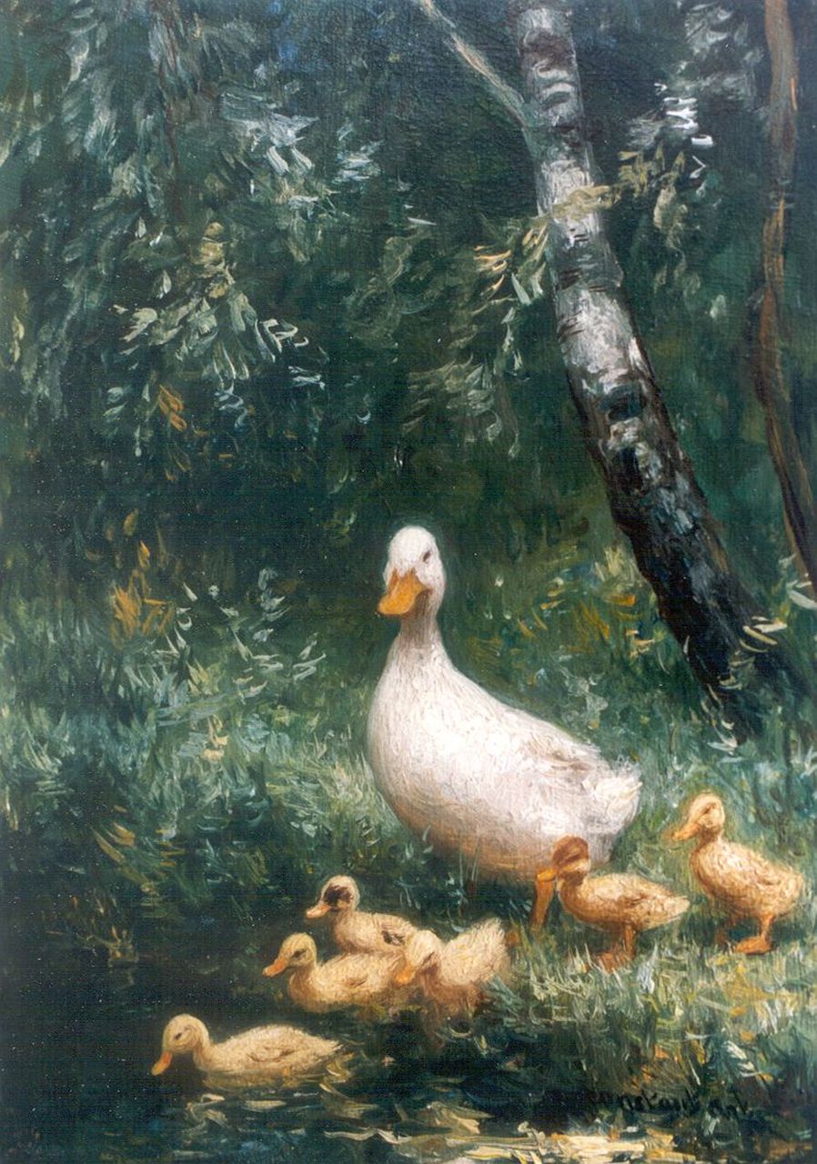 Constant Artz Kunstwerk • Gemälde • zuvor zu verkaufen Hen with ducklings watering