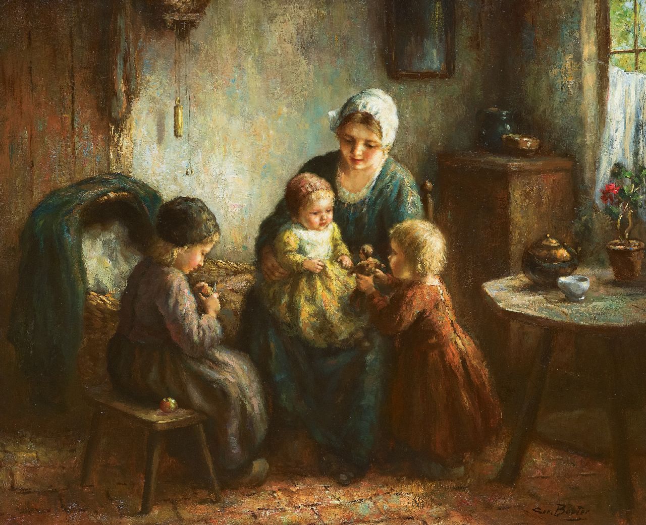 Cor Bouter Kunstwerk • Gemälde • zuvor zu verkaufen Junge Mutter mit ihre Kindern