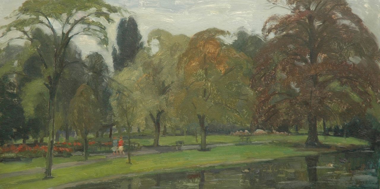 Noltee B.C.  | Bernardus Cornelis 'Cor' Noltee, Merwestijnparc in Dordrecht, Öl auf Holzfaser 39,3 x 75,5 cm