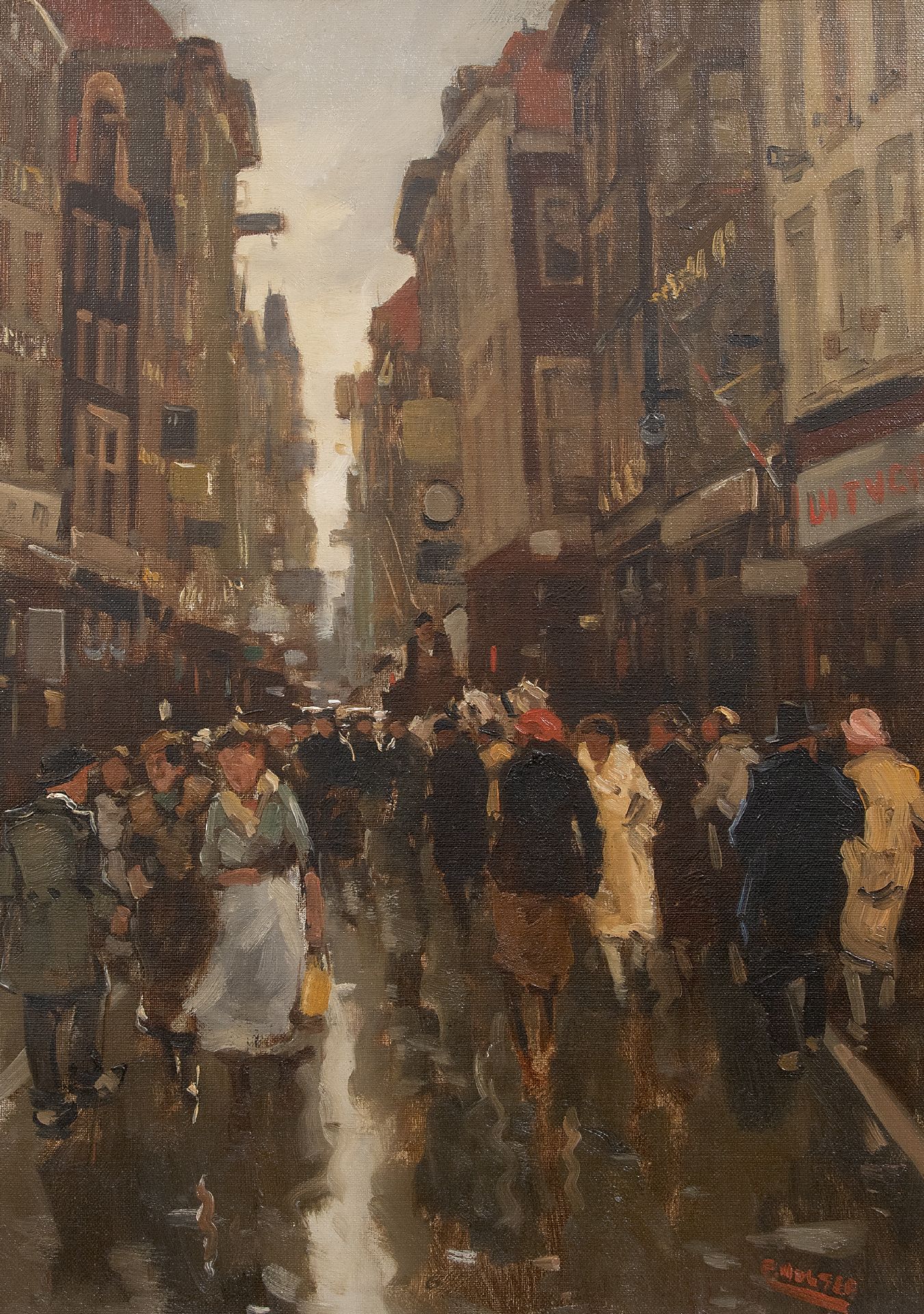 Cor Noltee Kunstwerk • Gemälde • zu verkaufen Belebte Einkaufsstraße/Spuistraat, Den Haag