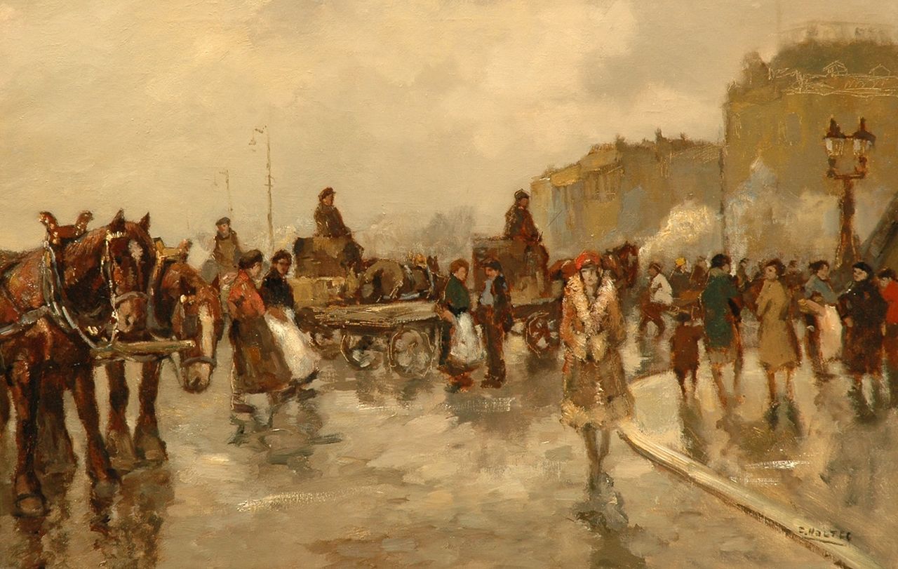 Cor Noltee Kunstwerk • Gemälde • zuvor zu verkaufen Ein belebter Tag auf einem Pariser Boulevard