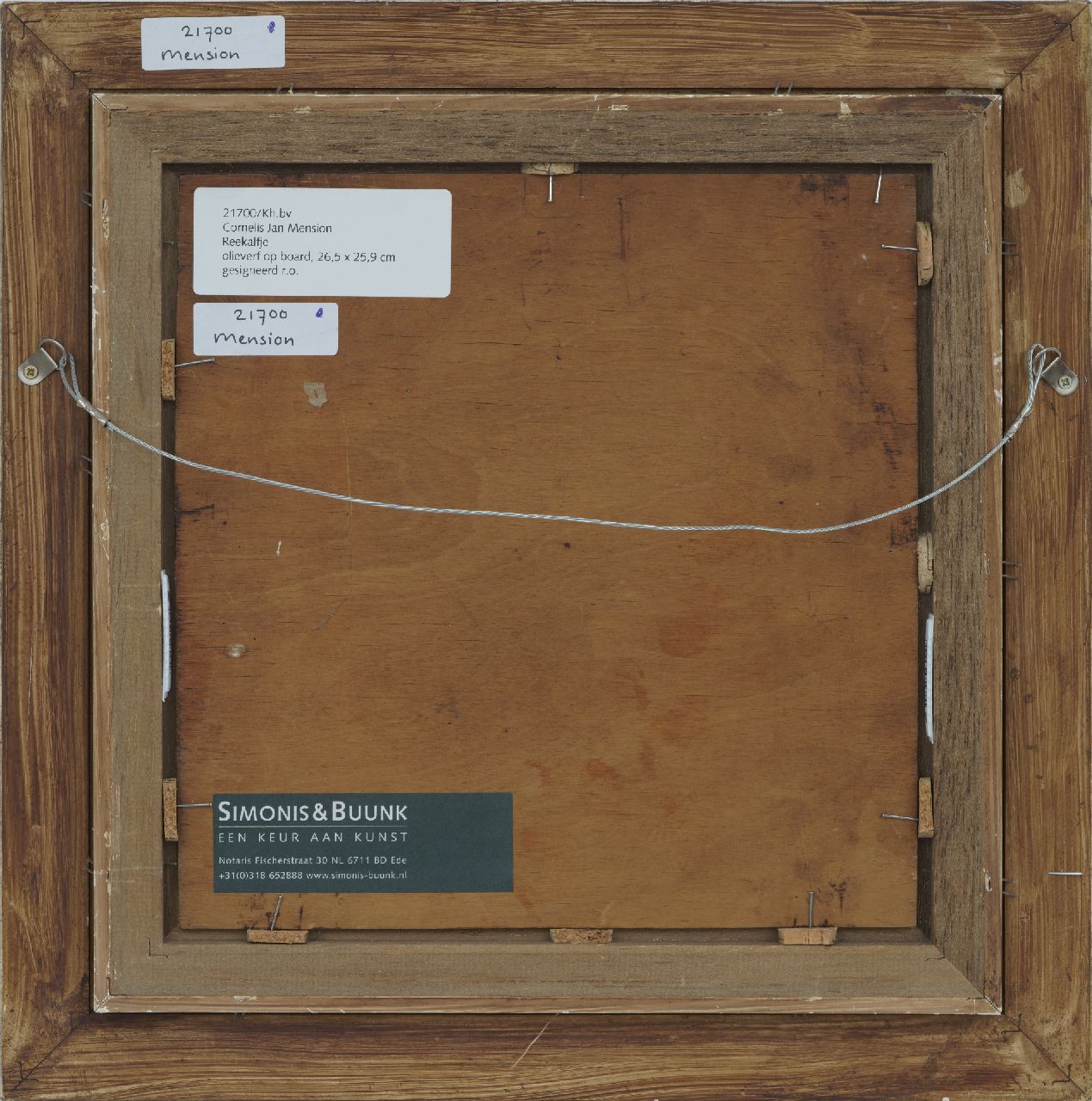 Cornelis Jan Mension malte Landschaften, Stadtansichten und Stillleben. Bekannt wurde er jedoch durch seine Bilder von Kleintieren wie Vögeln und Mäusen, Affen und größeren wilden Tieren. Als Maler wurde er durch den Unterricht von Franz Helfferich in Den Haag gebildet; dann besuchte er die Akademie der Schönen Künste in der gleichen Stadt. Ein freier, geschmeidiger Impressionismus ist der Stil, der ihn sein ganzes Leben prägte. Mension war auch ein ausgezeichneter Radierer und Lithograph.