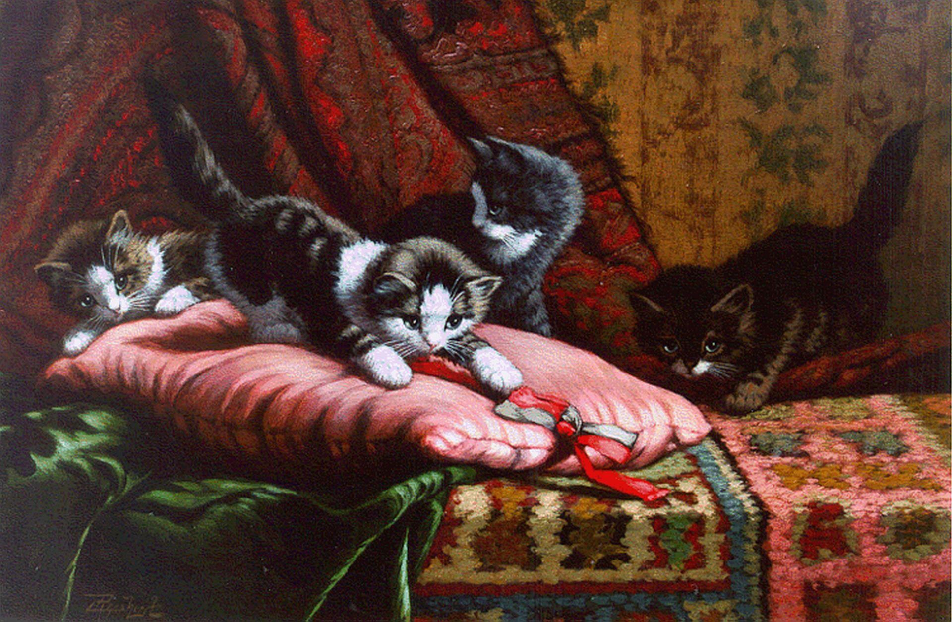 Cornelis Raaphorst Kunstwerk • Gemälde • zuvor zu verkaufen Four kittens playing
