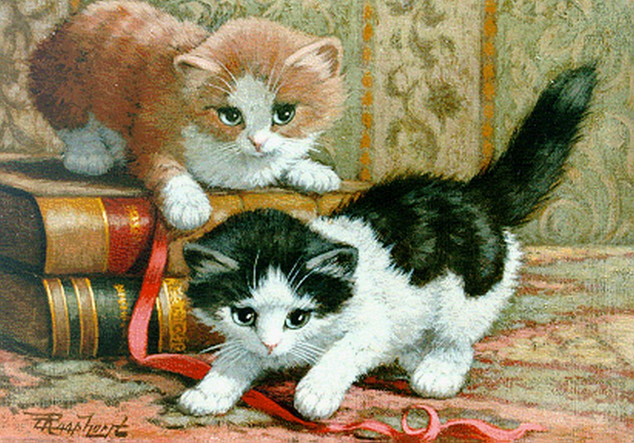 Cornelis Raaphorst Kunstwerk • Gemälde • zuvor zu verkaufen Playful kittens