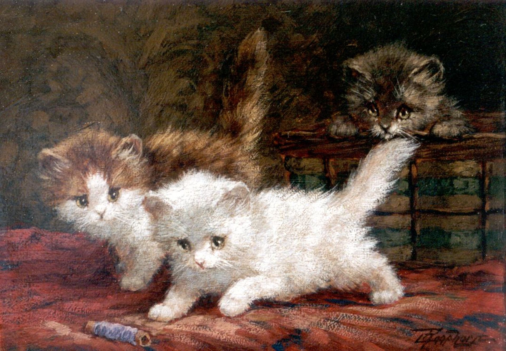 Cornelis Raaphorst hat sich zunächst auf das Malen von Stillleben, Blumen und Landschaften spezialisiert. Danach werden junge spielende Kätzchen sein Hauptmotiv. Er malt sie in all ihren Taten, umgeben von farbenfrohen luxuriösen Stoffen und wertvollen Utensilien. Die Inspirationsquelle muss das Werk von Henriëtte Ronner-Knip gewesen sein, obwohl er seinen eigenen Malstil angewendet hat.