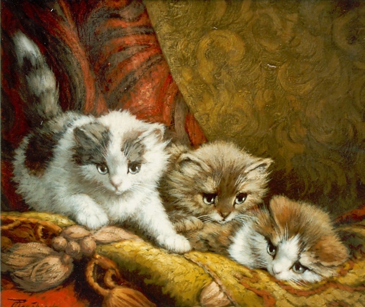 Cornelis Raaphorst Kunstwerk • Gemälde • zuvor zu verkaufen Three kittens