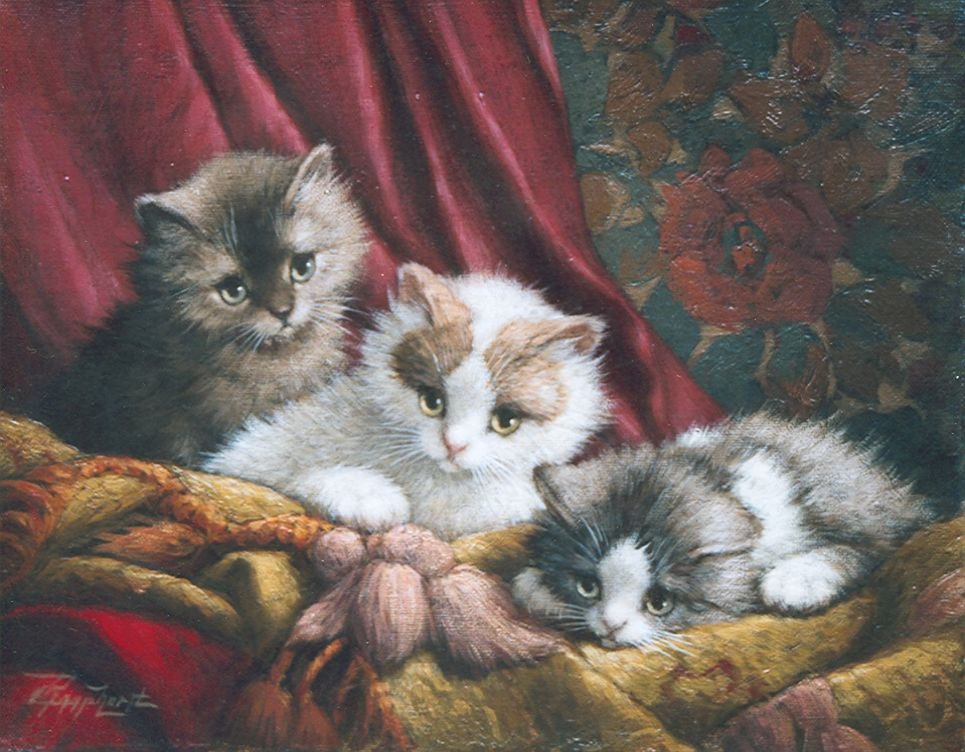 Cornelis Raaphorst Kunstwerk • Gemälde • zuvor zu verkaufen Three kittens